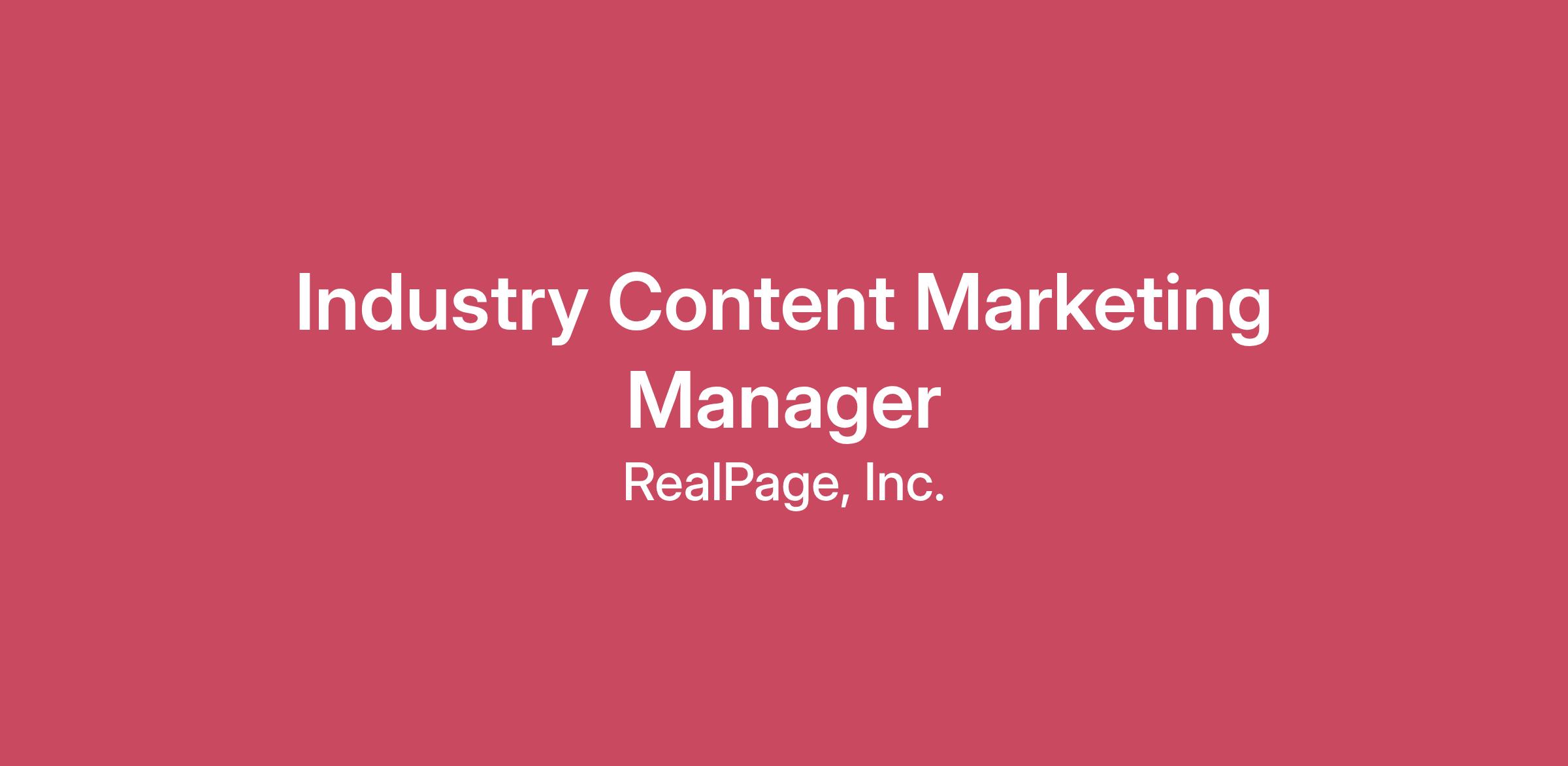 Overview The Industry Content Marketing Manager ensures RealPage shows up to the multifamily industry with clear, consistent, and credible thought leadership. This role connects Demand Generation priorities, product narratives, and corporate messaging into industry-facing content programs that reinforce customer business challenges and priority topics such as Agentic AI. RealPage is looking for a strategic, hands-on marketer to own and evolve our most visible industry-facing programs across thought leadership, speaking, industry engagement, and event storytelling. While Demand Generation owns product- and persona-based campaign strategy and performance, and Communications leads corporate messaging and earned media, this role brings those strategies to life through scalable, industry-relevant content programs and executive visibility. Serving as a connective layer between Demand Generation, Product Marketing, Communications, and Events, this role ensures RealPage’s external presence is cohesive, intentional, and aligned to business priorities, while continuously raising the quality and consistency of our industry content. This is a highly collaborative role for a strategic content leader who can connect narrative to execution and operate comfortably across teams. Responsibilities What You’ll Do Own Industry-Facing Content Programs Lead and execute RealPage’s industry content programs, including thought leadership series, market intelligence webcasts, executive roundtables, research-led initiatives, and speaking engagements. Own program strategy and supporting content creation, establishing clear themes, structure, and editorial direction to ensure programs are cohesive, repeatable, and scalable. Translate Demand Generation priorities into industry-facing programs grounded in customer business challenges, supporting data, and solution benefits. Extend and Support Demand Generation Strategy Partner closely with Demand Generation to understand campaign goals, product focus, target audiences, and timing. Design content programs and narratives that extend campaign impact beyond individual channels through speaking, events, and executive-led moments. Ensure industry programs reinforce Demand Generation strategy without duplicating campaign execution or owning campaign-led asset creation. Partner with Communications and PR Collaborate with Communications to align industry programs with corporate messaging and brand positioning. Coordinate timing and messaging so owned programs, events, and earned media reinforce one another, while Communications retains ownership of media strategy and press relationships. Manage the Speaker and Speaking Program Own the end-to-end speaker program for industry conferences and events. Manage call-for-speakers submissions, abstracts, speaker bios, and presentation development. Partner with Product Marketing and Communications to ensure narrative quality and message discipline, while Product Marketing retains ownership of product messaging and demos. Shape Event Storytelling Partner with Events and Product Marketing to shape cohesive event storytelling and booth narratives that connect campaign themes, industry perspectives, and product value. Support pre- and post-event content that extends the value of event participation and reinforces key narratives. Champion Content Quality, Voice, and Consistency Own voice, tone, and quality standards across industry-facing content programs. Create and review assets to ensure clarity, consistency, and alignment with the RealPage brand. Develop editorial themes and narrative frameworks that support consistent storytelling while introducing new ideas and formats. Help integrate priority industry perspectives, such as Agentic AI, into thought leadership, speaking sessions, and event narratives in a credible and business-aligned way. What Success Looks Like Industry content programs clearly reinforce customer business challenges and Demand Generation priorities. Thought leadership, speaking, and events feel cohesive, intentional, and credible. Content quality, clarity, and consistency improve across marketing efforts. Cross-functional partners experience clear ownership, strong collaboration, and elevated output. Qualifications 8+ years of experience in content marketing, industry marketing, thought leadership, or integrated marketing within B2B SaaS or enterprise technology. Proven experience owning industry-facing content programs end-to-end, including strategy, execution, and supporting asset creation. Strong writing and editorial instincts, with the ability to elevate quality without becoming a bottleneck. Experience partnering closely with Demand Generation, Product Marketing, Communications/PR, and Events. Comfortable operating in a strategic, cross-functional role that requires influence and judgment. Multifamily, real estate, or PropTech experience is a plus. #LI-REMOTE #LI-JL1 Why RealPage RealPage is a global leader in multifamily technology, helping property owners and operators make smarter decisions across the renter lifecycle. This role plays a critical part in shaping how the industry experiences RealPage through thoughtful, aligned, and credible industry programs. SALARY AND BENEFITS RealPage provides a competitive salary package along with a comprehensive benefit plan that includes: Health, dental, and vision insurance. Retirement savings plan with company match. Paid time off and holidays. Professional development opportunities. Performance-based bonus based on position. Compensation may vary depending on your location, qualifications including job-related education, training, experience, licensure, and certification, that could result at a level outside of these ranges. Certain roles are eligible for additional rewards, including annual bonus, and sales incentives depending on the terms of the applicable plan and role as well as individual performance. Equal Opportunity Employer: RealPage Company is an equa
