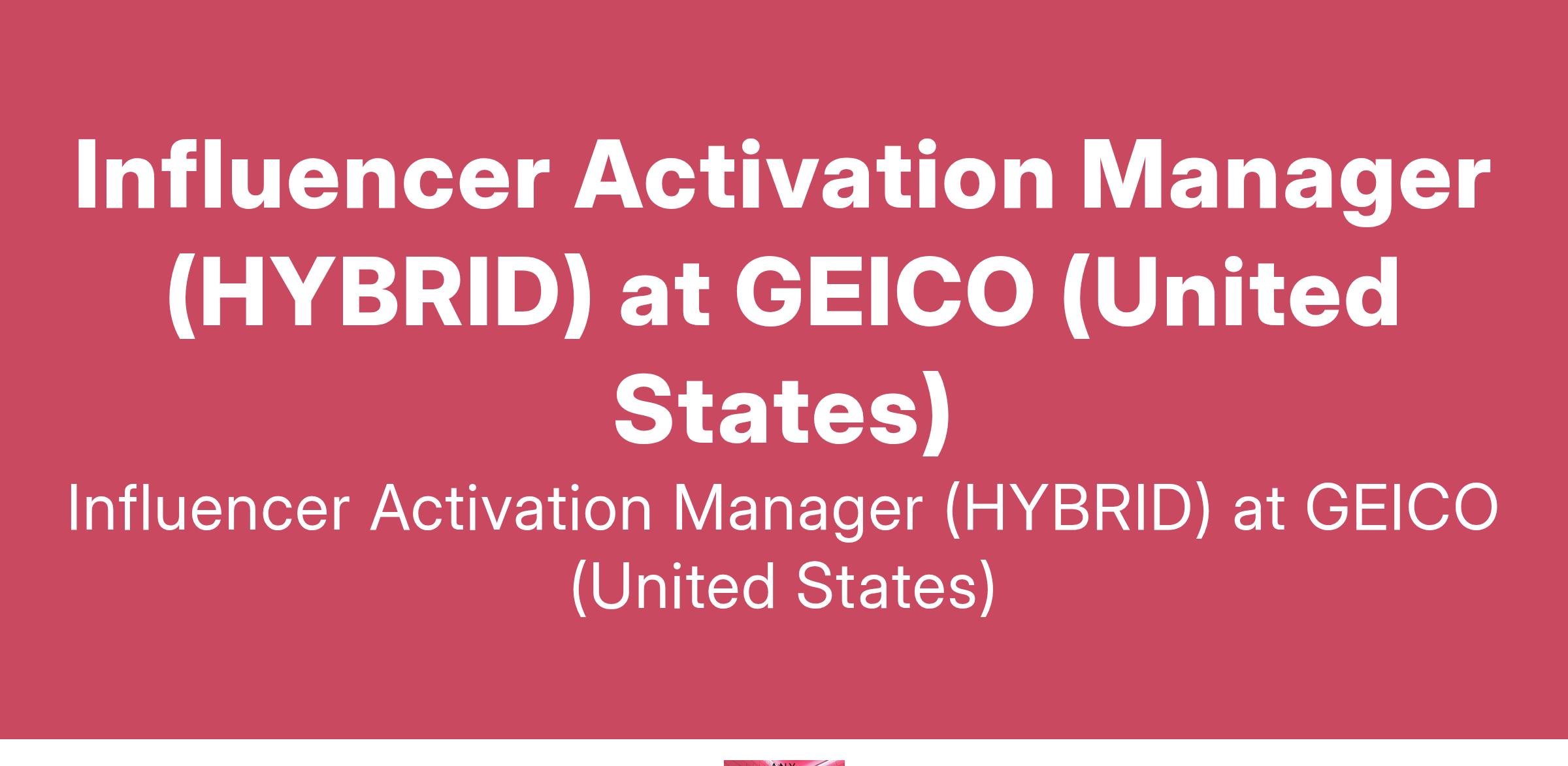 Influencer Activation Manager (HYBRID) at GEICO (United States)