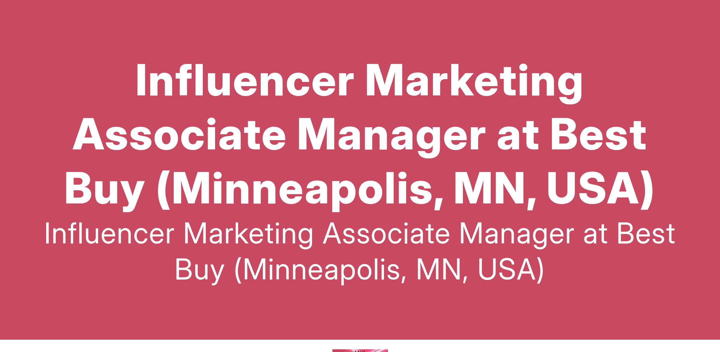 Influencer Marketing Associate Manager at Best Buy (Minneapolis, MN, USA)