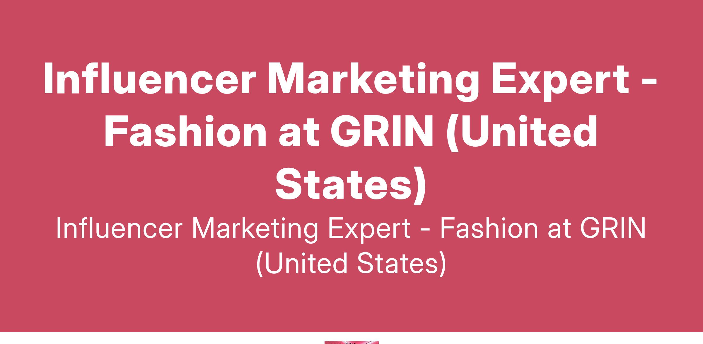 Influencer Marketing Expert - Fashion at GRIN (United States)
