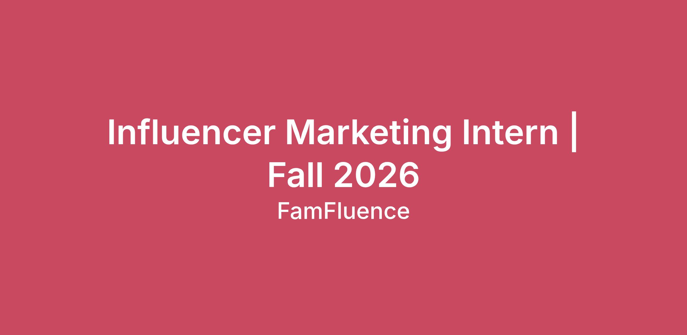 About the jobFamFluence Talent Management, a leading creator/influencer management agency exclusively representing 100+ of the top performing mom/family influencers in North America, is seeking an Influencer Marketing Intern. This position is 100% virtual, with a collaborative workplace, and offers significant growth potential for a post-graduation role.Job Tasks Include:Assist the Sales/Talent Management team in securing influencer campaign activations.Build and maintain relationships with influencers to support campaign strategies.Research and recommend influencers to brands based on audience, niche, and campaign goals.Collect and analyze data from past campaigns, creating reports and insights to optimize future activations.Stay up-to-date with market trends to help inform campaign strategy.Conduct regular outreach to brands and secure campaign opportunities.Apply to campaigns through platforms to secure influencer partnerships. Compensation:This internship is for college credit only. You must verify eligibility for college credit with your College or University Career Center. Accepting credit hours is not required to accept the position if offered.Our Dream Team Member:Passionate about supporting influencer talent and social media growth.Resourceful, committed, and organized, with a love for checking things off the to-do list.Social media savvy, eager to brainstorm, and excited to try new ideas. Requirements Include:Must be a rising sophomore, junior, or senior.3.0 GPA or above.Commit to at least 15 hours a week during normal office hours (8 AM–5 PM in your time zone).Excellent writing and communication skills.Strong organizational abilities and a professional demeanor.Resourceful, eager to learn, and proactive in asking questions. Job Description:Internship sessions are Fall/Winter (July–December) and Spring/Summer (January–June). Many interns return for multiple sessions, with active interns getting first pick for following internships.Reimbursement:FamFluence Talent will reimburse you $250 per month for the use of your personal cell phone, computer, and home internet.