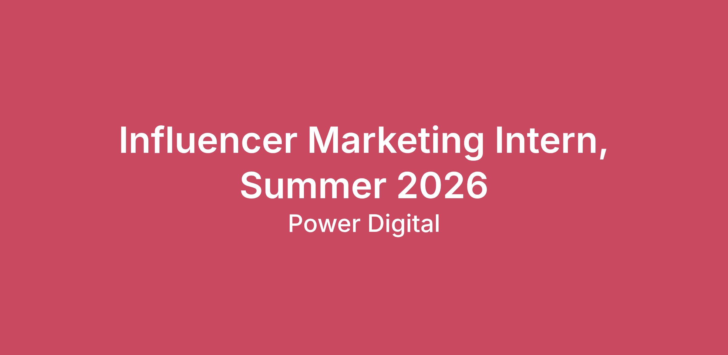 Who We Are: We are a tech-enabled growth firm–at the intersection of marketing, consulting & data intelligence–igniting revenue and brand recognition for leading and emerging companies around the world. As a people-first firm, we value diversity in backgrounds and experiences. We strongly believe our people and culture are key to our success. Our vision is to be recognized as the most valued and respected private growth marketing firm in the world–with a scalable brand, culture and services. Our mission is to power the relentless pursuit of growth and redefine what’s possible through a team of growth-obsessed experts who demand innovation and results - driven by integrity, autonomy, and grit. As a full-service growth marketing firm, we offer best-in-class services including: SEO, Content Marketing, Paid Media, Social Media Marketing, Programmatic + CTV, Public Relations, Influencer Marketing, Email + SMS, Conversion Rate Optimization, Retail Marketing, and Creative. Here at Power Digital, we are hyper-focused on helping brands drive revenue growth and brand recognition, ultimately driving irrefutable value for our clients. At the heart of Power Digital is our proprietary technology, nova, which analyzes businesses through first-party data, simplifying investment planning for marketing and diligence in M&A––putting marketers in a strategic seat at the table––and providing value in unparalleled ways. Managing billions in media, our dynamic team––of consultative marketers, creatives, analysts and technologists––challenge traditional ways of planning and measurement through meticulous testing and data science across each milestone of the customer journey.*This is a remote opportunity open to current college students enrolling in an internship course for college credit Position Title: Influencer Marketing Intern Internship Term: Summer 2026 Compensation: College credit [MUST be enrolled in college course] Desired Fields of Study: Marketing, Business, PR, Communications, Journalism Hours Desired: 15/week A day in the life: As an Influencer Marketing Intern, you will work hand in hand with the rest of the team to grow your skills, oversee influencer programming from A-Z and be an involved member of the Influencer Department. We look forward to hearing from you! Responsibilities: Build targeted influencer lists across a variety of niches (lifestyle, beauty, F&B, fashion + more) Assist in influencer campaigns from A-Z including creative brief building, pitching, invoicing, and influencer communications Support in ideating compelling influencer campaigns across Instagram, TikTok, YouTube and more Participate in training sessions designed to teach you the fundamentals of Influencer Marketing Contribute ideas in creative brainstorming sessions with the Influencer team Develop your project management skills through hands-on experience with our project management system, Asana Conduct research and analysis on competitors and industry trends Support on influencer data entry and campaign reporting Collaborate with the entire Power Digital team to assist in cross-channel strategy sessions, lunch and learns, and an end of the semester team project Role Requirements: Previous internship and/or professional experience preferred (Influencer-specific experience is a plus!) Passion for influencer marketing Understanding of social media platforms and the influencer marketing space Extreme attention to detail Inherently organized and able to juggle multiple projects flawlessly Positive, can-do attitude An eagerness to learn and develop skills Familiarity with Influencer processes Exceptional communication skills Ability to be a self-starter Problem solver Benefits & Perks: Monthly & quarterly team bonding activities Fun, savvy, and hard-working team(s) Full-remote flexibility Power Digital’s people and culture are at the core of our success, which is why diversity in our team’s backgrounds and experiences are paramount. We are an Equal Opportunity Employer and our employees are people with different strengths, experiences, and backgrounds, who strive to make an impact inside and outside of the workplace. Diversity not only includes race and gender identity, but also age, disability status, veteran status, sexual orientation, religion and many other parts of one’s identity. All of our employees' points of view are key to our success, and inclusion is everyone's responsibility. Please be aware of fictitious job openings, consulting engagements, solicitations, or employment offers from suspicious sources. These engagements may be an attempt to obtain private information, or to induce you to pay a fee for services related to recruitment or training. Power Digital does NOT charge any application, processing, or training fee at any stage of the recruitment or hiring process. All genuine job openings will be posted on our careers page at https://powerdigitalmarketing.com/company/careers/. If you have any doubts about the authenticity of any messaging behalf of Power Digital, please send us an email at recruiting@powerdigital.com before taking any further action in relation to the correspondence.