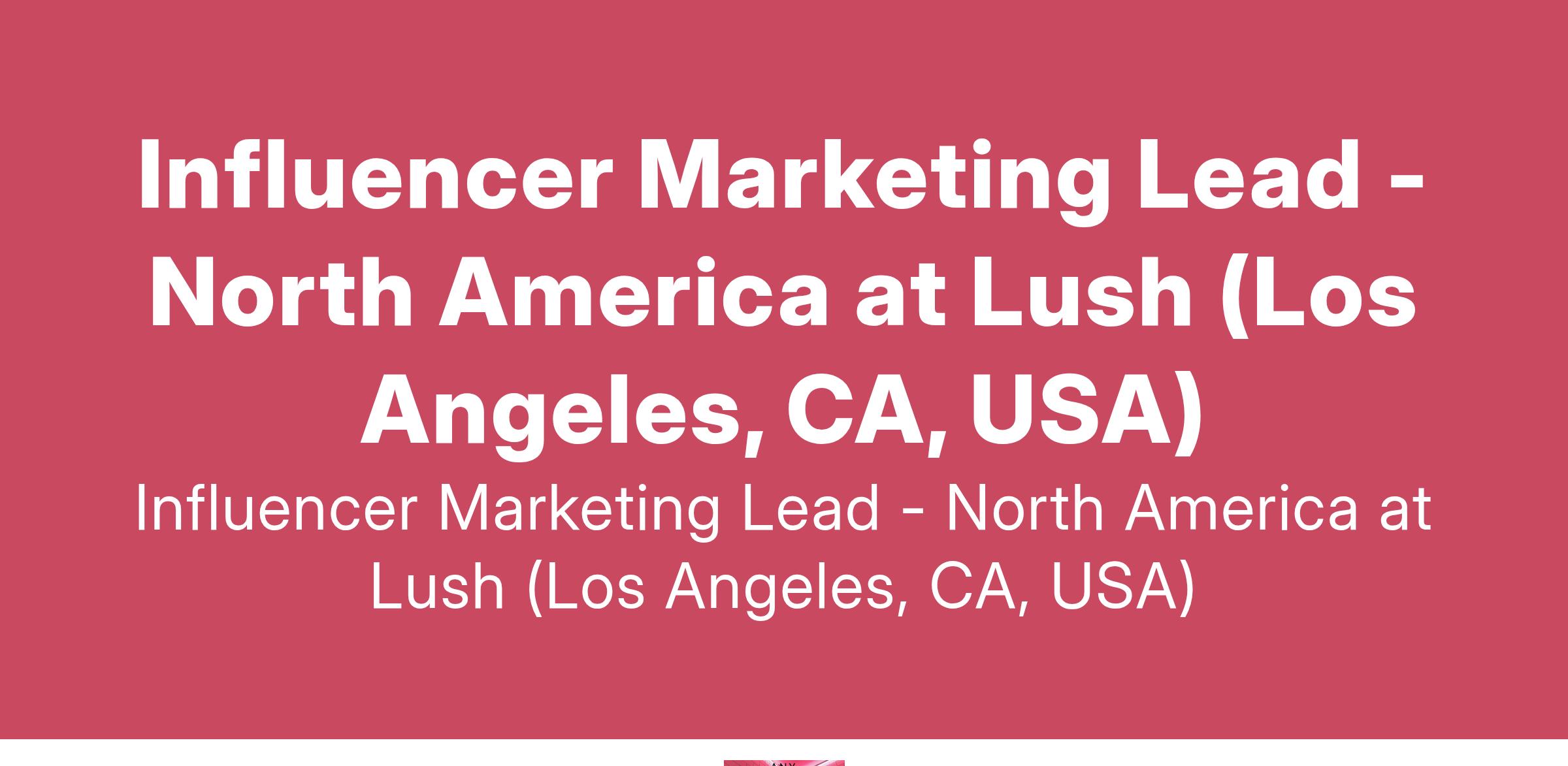 Influencer Marketing Lead - North America at Lush (Los Angeles, CA, USA)