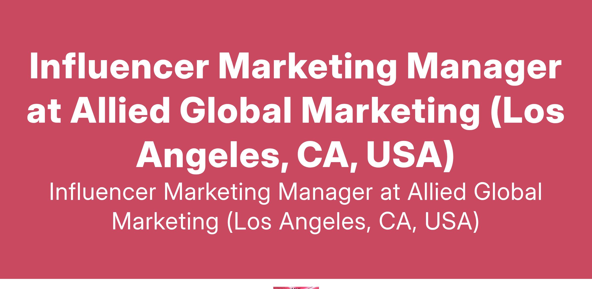 Influencer Marketing Manager at Allied Global Marketing (Los Angeles, CA, USA)