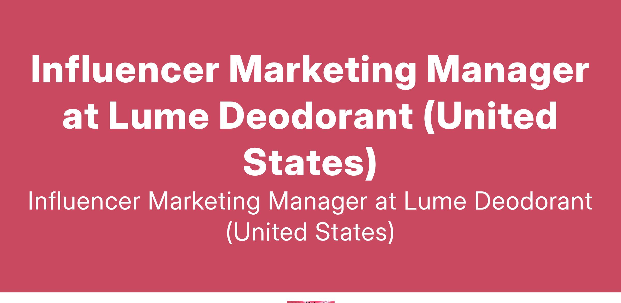 Influencer Marketing Manager at Lume Deodorant (United States)