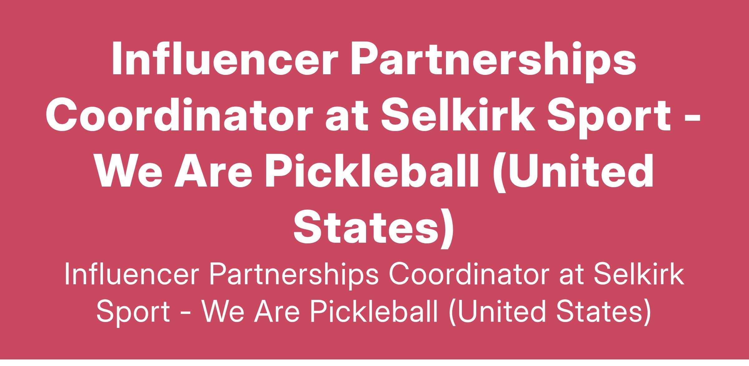 Influencer Partnerships Coordinator at Selkirk Sport - We Are Pickleball (United States)