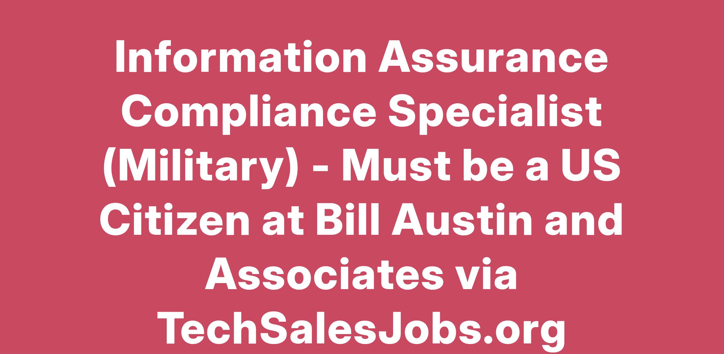 Information Assurance Compliance Specialist (Military) - Must be a US Citizen at Bill Austin and Associates via TechSalesJobs.org
