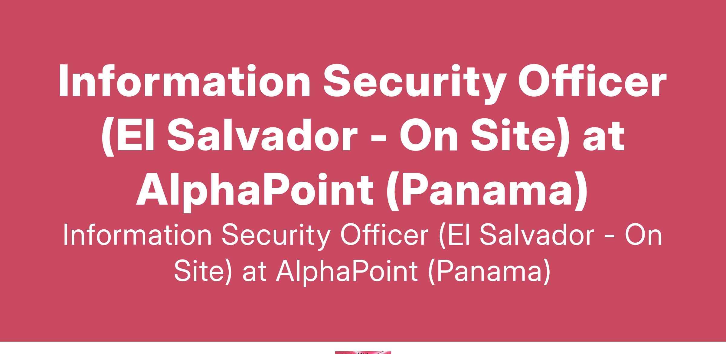 Information Security Officer (El Salvador - On Site) at AlphaPoint (Panama)