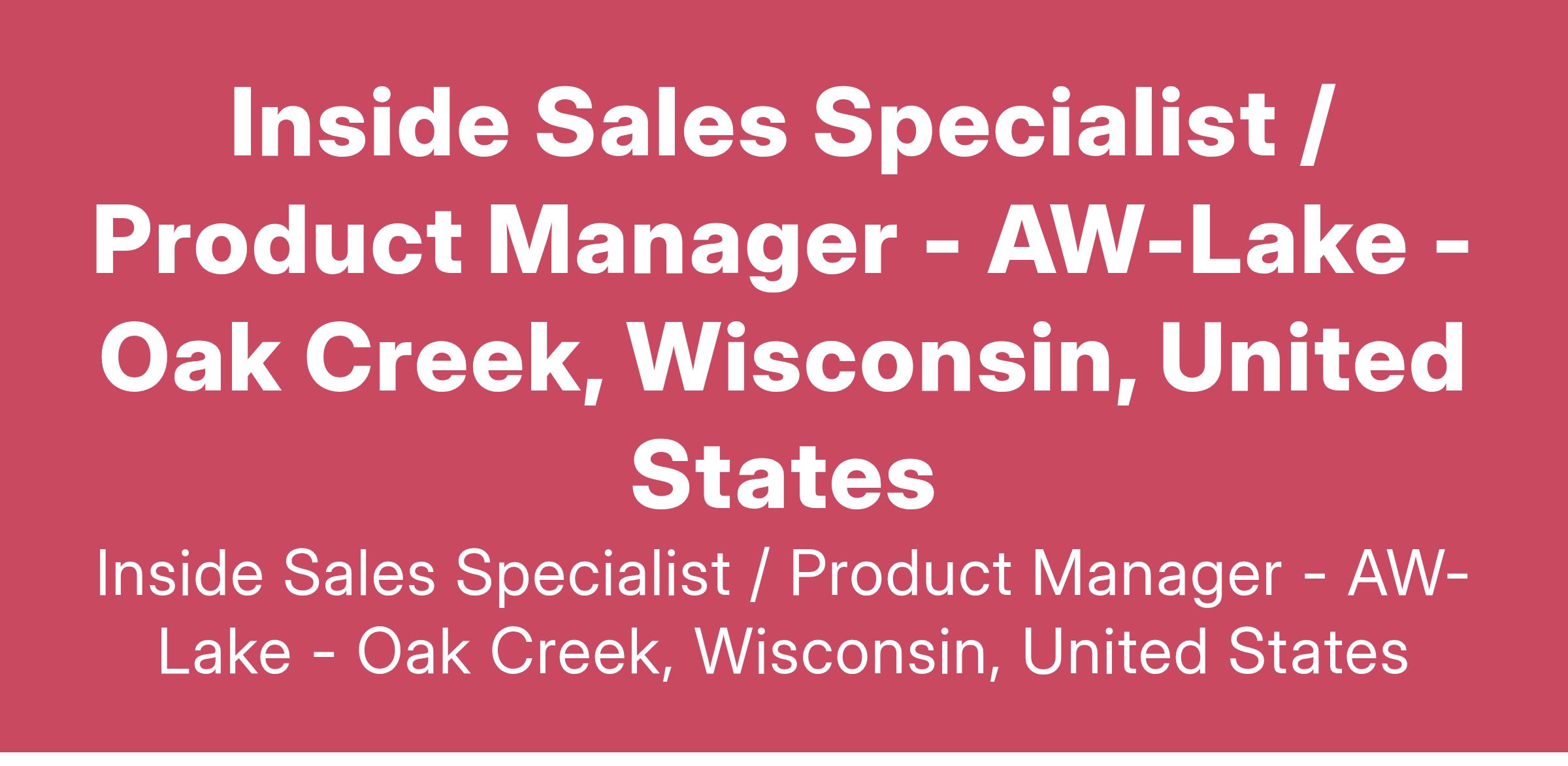 Inside Sales Specialist / Product Manager - AW-Lake - Oak Creek, Wisconsin, United States
