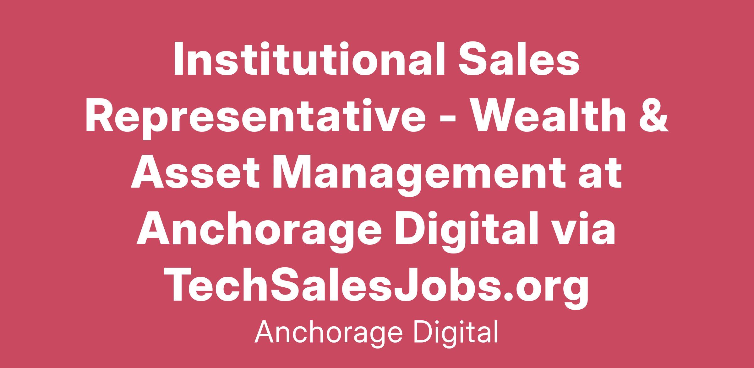 Anchorage Digital is looking for a highly motivated and experienced Institutional Sales Representative to join our team. As a member of the sales team, you will be integral to driving forward the growth and future success of the Anchorage Wealth Management custody and trading platform for RIAs, Asset Managers, Broker Dealers, Banks and other financial institutions.