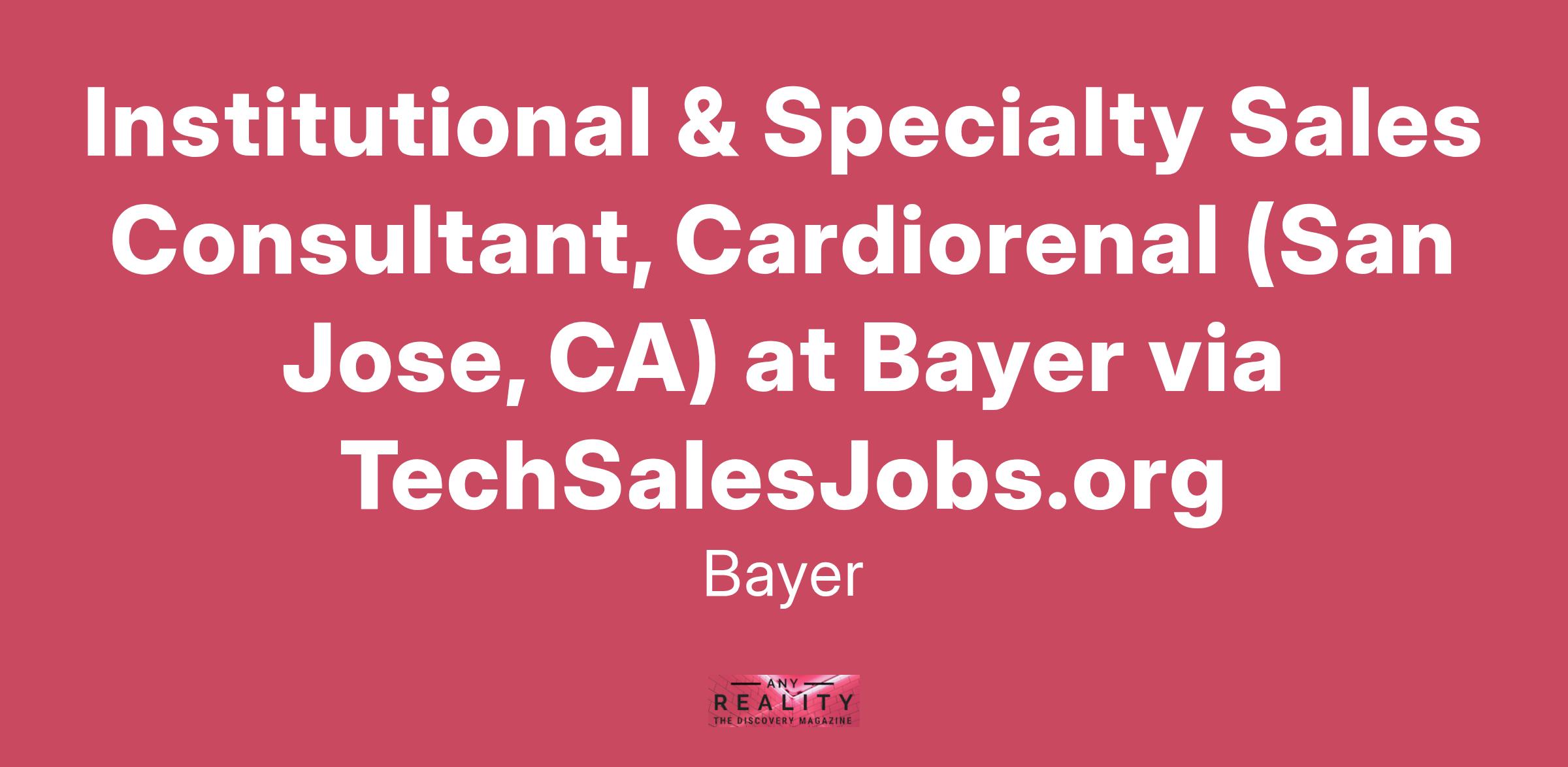 Institutional & Specialty Sales Consultant, Cardiorenal (San Jose, CA)