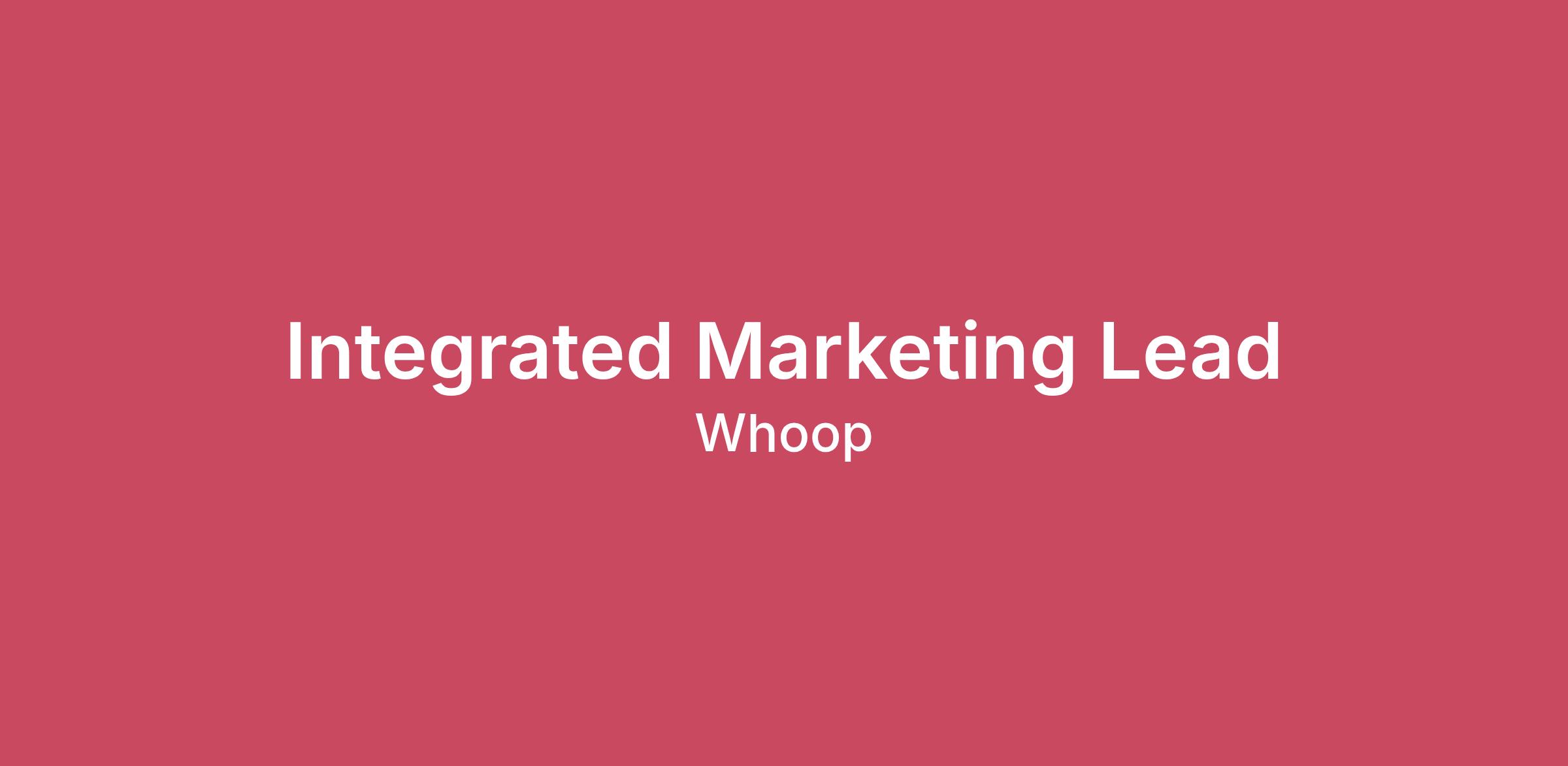 At WHOOP, we’re on a mission to unlock human performance and healthspan. WHOOP empowers members to perform at a higher level through a deeper understanding of their bodies and daily lives, delivering personalized insights that drive meaningful behavior change. As WHOOP continues to scale globally, building a distinctive, culturally relevant brand is critical to driving engagement, retention, and long-term growth. WHOOP is hiring an Integrated Marketing Lead – someone who lives inside the positioning and can protect the integrity of the brand as campaigns move from strategy into execution. You are the person who translates WHOOP's positioning, member insights, and product priorities into the briefs that set creative work in motion — and you hold that thread from brief through launch. You bring that brand depth to integrated campaign work, ensuring every channel expression is strategically grounded and advances our objectives. As a partner to Creative, PMM, Marketing Strategy & Ops, and agency relationships, you operate with both strategic clarity and executional accountability. We will consider candidates based out of our Boston HQ. The successful candidate must be prepared to work out of our Boston HQ. \nRESPONSIBILITIES: Define and track brand health metrics in partnership with Analytics, and surface insights to inform future strategy Be a true steward of the WHOOP brand. Deeply understand the positioning, voice, and identity, and act as the quality layer between strategy and execution across all campaigns and touchpoints Develop insight-driven creative briefs that translate WHOOP's brand positioning, product priorities, and member insights into clear creative direction with defined objectives, guardrails, and success metrics. Partner with Product Marketing to incorporate member insights, ensuring each brief reflects both brand ambition and product truth. Lead the planning and orchestration of integrated brand campaigns, ensuring alignment with business priorities, audience insight, and brand positioning Own end-to-end integration across paid, owned, and earned channels — ensuring consistency of message while adapting execution to channel and funnel best practices Act as the bridge between creative and commercial teams, ensuring campaigns are both creatively strong and grounded in business impact Work closely with Marketing Operations to ensure timelines, workflows, and outputs support successful delivery, treating Ops as a core partner across all campaigns Support and lead brand and creative agency relationships, setting scope, expectations, day-to-day workflow, managing feedback loops and performance standards to ensure high-quality, on-strategy execution Be a steward of the WHOOP brand — deeply understand the positioning, voice, and identity, and act as the quality layer between strategy and execution across campaigns and touchpoints Drive disciplined planning and prioritization across campaigns of varying scale — staying close to execution, proactively identifying risks, and removing blockers to maintain momentum Partner with cross-functional teams including PMM, Sports & Talent, Social, Wholesale, and Product to understand channel and partner needs and ensure experiences deliver against business objectives Collaborate with Analytics to define campaign objectives, establish measurement frameworks, and surface post-campaign learnings that inform future briefs and strategy Balance brand-building and performance-driving objectives to deliver work that is both distinctive and commercially effective QUALIFICATIONS: 5–8 years of experience in brand marketing, integrated marketing, or campaign-focused roles at a consumer brand Deep brand sensibility. A genuine POV on what great integrated marketing looks like and a track record of protecting brand integrity through execution Demonstrated brief writing ability — can translate positioning and member insights into clear, inspiring creative direction Experience supporting creative agency or cross-functional creative team relationships in fast-paced environments Strong strategic thinking and communication skills with the ability to influence cross-functional stakeholders Ability to understand channel dynamics without losing the brand thread Strong commitment to embracing and leveraging AI tools in day-to-day tasks, ensuring AI-assisted work aligns with the same high-quality standards as personal contributions \nWe will consider candidates based out of our Boston HQ or remotely from New York, NY. The successful candidate must be prepared to work out of one of those two locations. Interested in the role, but don’t meet every qualification? We encourage you to still apply! At WHOOP, we believe there is much more to a candidate than what is written on paper, and we value character as much as experience. As we continue to build a diverse and inclusive environment, we encourage anyone who is interested in this role to apply. WHOOP is an Equal Opportunity Employer and participates in E-verify to determine employment eligibility The WHOOP compensation philosophy is designed to attract, motivate, and retain exceptional talent by offering competitive base salaries, meaningful equity, and consistent pay practices that reflect our mission and core values. At WHOOP, we view total compensation as the combination of base salary, equity, and benefits, with equity serving as a key differentiator that aligns our employees with the long-term success of the company and allows every member of our corporate team to own part of WHOOP and share in the company’s long-term growth and success. The U.S. base salary range for this full-time position is $100,000 - $150,000. Salary ranges are determined by role, level, and location. Within each range, individual pay is based on factors such as job-related skills, experience, performance, and relevant education or training. In addition to the base salary, the successful candidate will also receive benefits