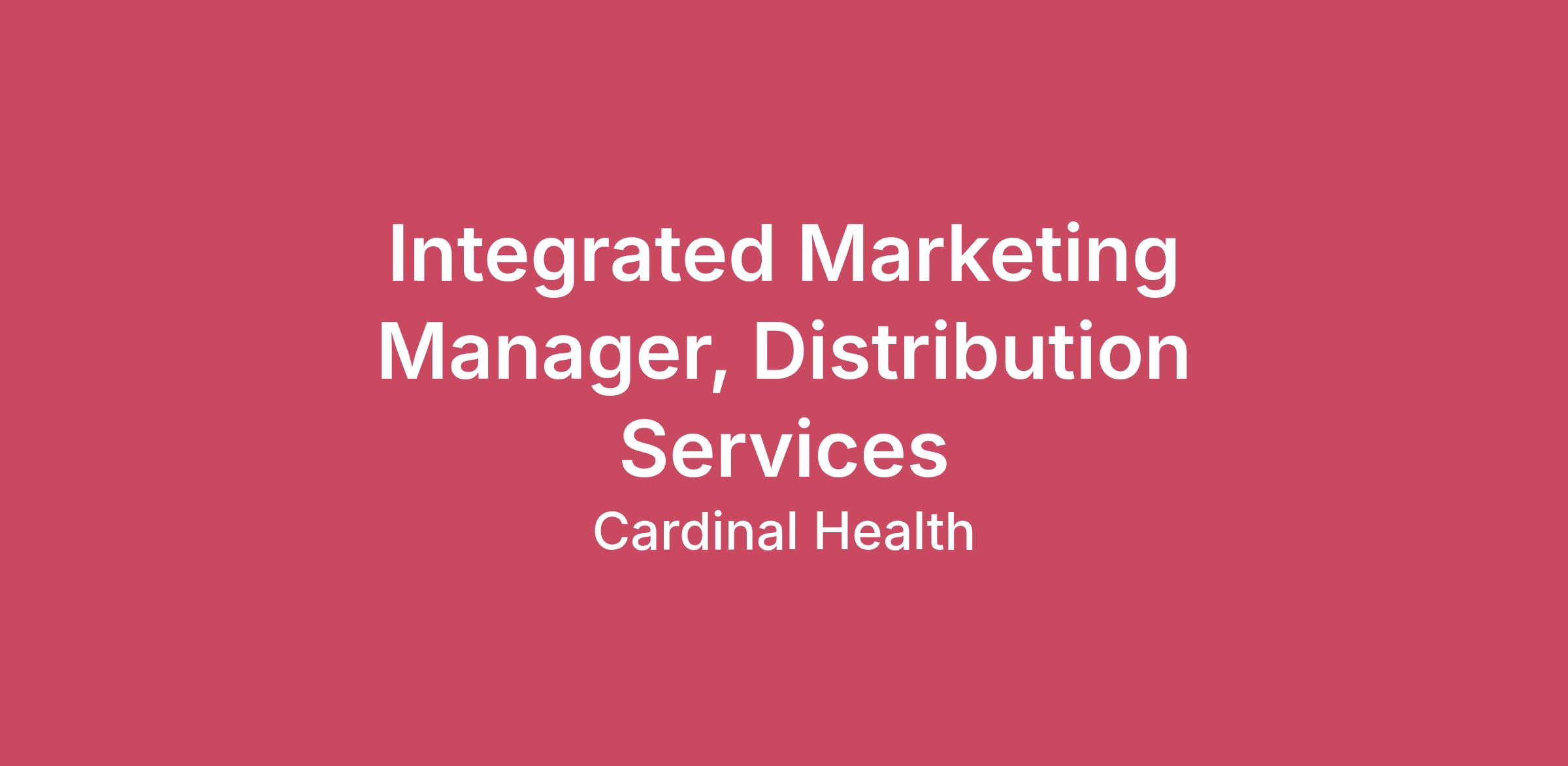 Headquartered in Dublin, OH, Cardinal Health is a global healthcare services and products company. We provide customized solutions for hospitals, healthcare systems, pharmacies, ambulatory surgery centers, clinical laboratories, physician offices and patients in the home. We are a distributor of pharmaceuticals and specialty products; a global manufacturer and distributor of medical and laboratory products; an operator of nuclear pharmacies and manufacturing facilities; and a provider of performance and data solutions. Working to be healthcare’s most trusted partner, our customer-centric focus drives continuous improvement and leads to innovative solutions that improve the lives of people every day.Cardinal Health’s US Medical Products and Distribution (“USMPD”) business offers industry expertise and an expanding portfolio of safe, effective medical products that improve quality, manage costs and reduce complexity. With our trusted regulatory experience, insights, and infrastructure, we help manufacture and source medical products that meet the demand for value-driven, comprehensive healthcare solutions.What Integrated Channel Marketing contributes to Cardinal HealthIntegrated Channel Marketing brings together our medical products and distribution solutions to better serve customers in the U.S. acute care market. Our goal is to win and retain distribution business while increasing Cardinal Health Brand™ product adoption. We create cohesive strategies, packaged solutions, and account‑based marketing programs that strengthen our position and support long‑term growth.The Channel Product & Solutions Strategy team defines the channel’s value proposition. We build integrated solutions to make purchasing easier for customers and help the sales team sell with clarity and confidence. The team sets channel strategy, develops solution frameworks, and delivers account‑based marketing that drives adoption and measurable ROI. ResponsibilitiesSupport the strategic go‑to‑market efforts for distribution and technology services, as well as strategic operations alignment and network strategy within the acute U.S. channel.Develop channel‑specific strategic plans and partner with Marketing Communications to build and execute integrated product marketing and promotional programs.Lead and execute initiatives to win and retain distribution business and drive deeper penetration of Cardinal‑branded products within the acute U.S. channel.Serve as the channel expert for assigned service lines to articulate customer value and clearly communicate features and benefits.Proactively gather competitive and market insights including competitor offerings, pricing, unmet needs, and evolving best practices.Collaborate effectively across cross‑functional teams, including Product Marketing, Sales, Customer Service, Strategic Pricing, Finance, Inventory, and others, demonstrating strong influencing skills and partnership.QualificationsBachelor's degree preferred4+ years of experience in Medical Device, Distribution, Supply Chain and/or Healthcare Marketing preferredSelf-motivated, driven individual to meet objectivesProficient in Excel with the ability to pivot tables, lookups, and analyzing multiple data sets to create actionable insights (including, but not limited to)Strong analytical skills allowing for quick assessment of situations, trade-offs, and ability to recommend appropriate course of actionAbility to influence cross-functional teams without formal authorityExcellent written and verbal communication skills and comfort presenting to internal and external audiencesAbility to travel up to 10%Location: This position can be remote and based anywhere within the United States. Candidates must be able to work within the EST or CST business hours.Anticipated salary range: $80,900 - $115,500Bonus eligible: NoBenefits: Cardinal Health offers a wide variety of benefits and programs to support health and well-being.Medical, dental and vision coveragePaid time off planHealth savings account (HSA)401k savings planAccess to wages before pay day with myFlexPayFlexible spending accounts (FSAs)Short- and long-term disability coverageWork-Life resourcesPaid parental leaveHealthy lifestyle programsApplication window anticipated to close: 03/23/2026 *if interested in opportunity, please submit application as soon as possible.** The salary range listed is an estimate. Pay at Cardinal Health is determined by multiple factors including, but not limited to, a candidate’s geographical location, relevant education, experience and skills and an evaluation of internal pay equity.Candidates who are back-to-work, people with disabilities, without a college degree, and Veterans are encouraged to apply. Cardinal Health supports an inclusive workplace that values diversity of thought, experience and background. We celebrate the power of our differences to create better solutions for our customers by ensuring employees can be their authentic selves each day. Cardinal Health is an Equal Opportunity/Affirmative Action employer. All qualified applicants will receive consideration for employment without regard to race, religion, color, national origin, ancestry, age, physical or mental disability, sex, sexual orientation, gender identity/expression, pregnancy, veteran status, marital status, creed, status with regard to public assistance, genetic status or any other status protected by federal, state or local law.To read and review this privacy notice click here