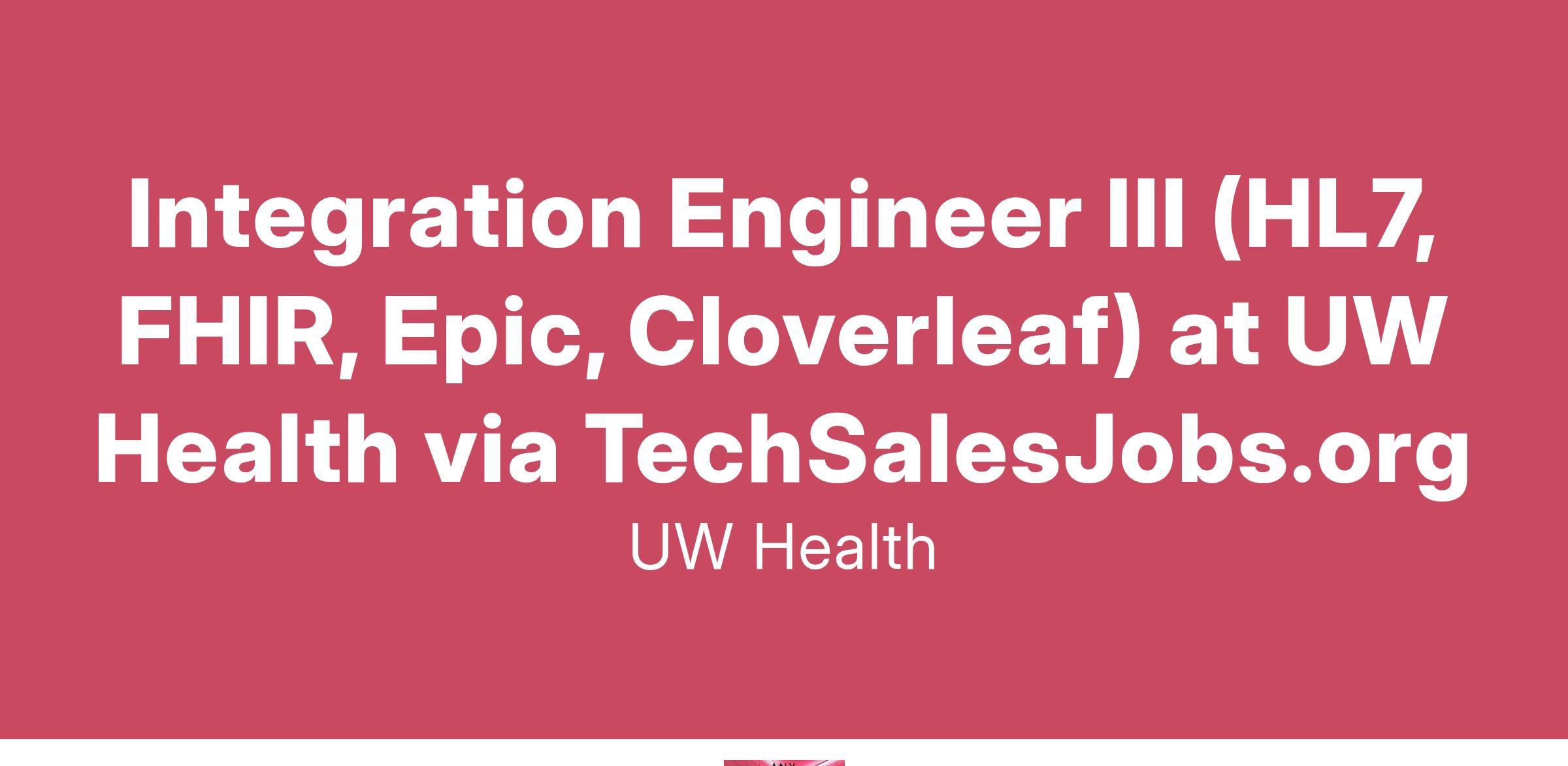 We are seeking an Integration Engineer III – (HL7, FHIR, Epic, Cloverleaf) to: