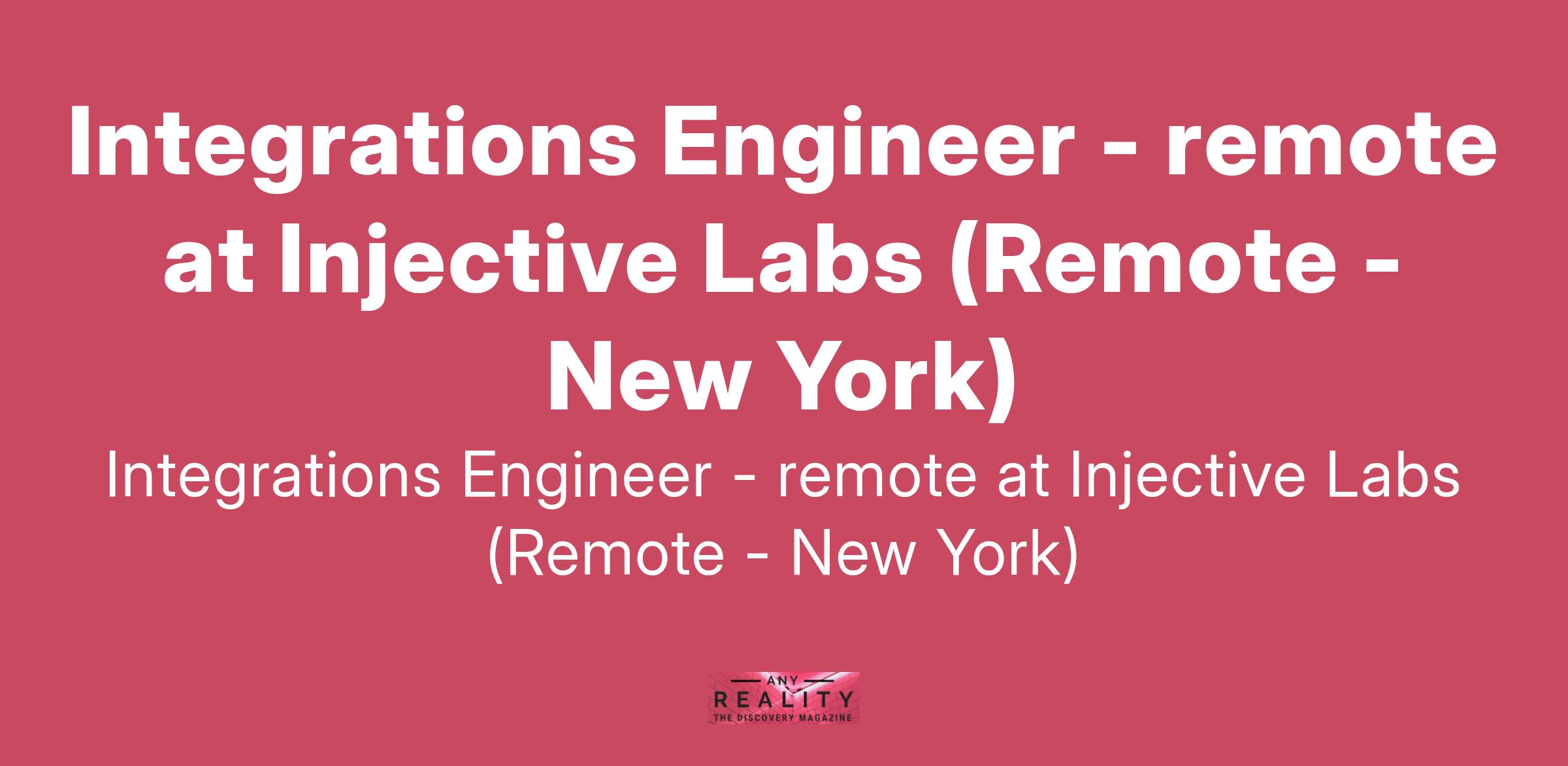 Integrations Engineer - remote at Injective Labs (Remote - New York)