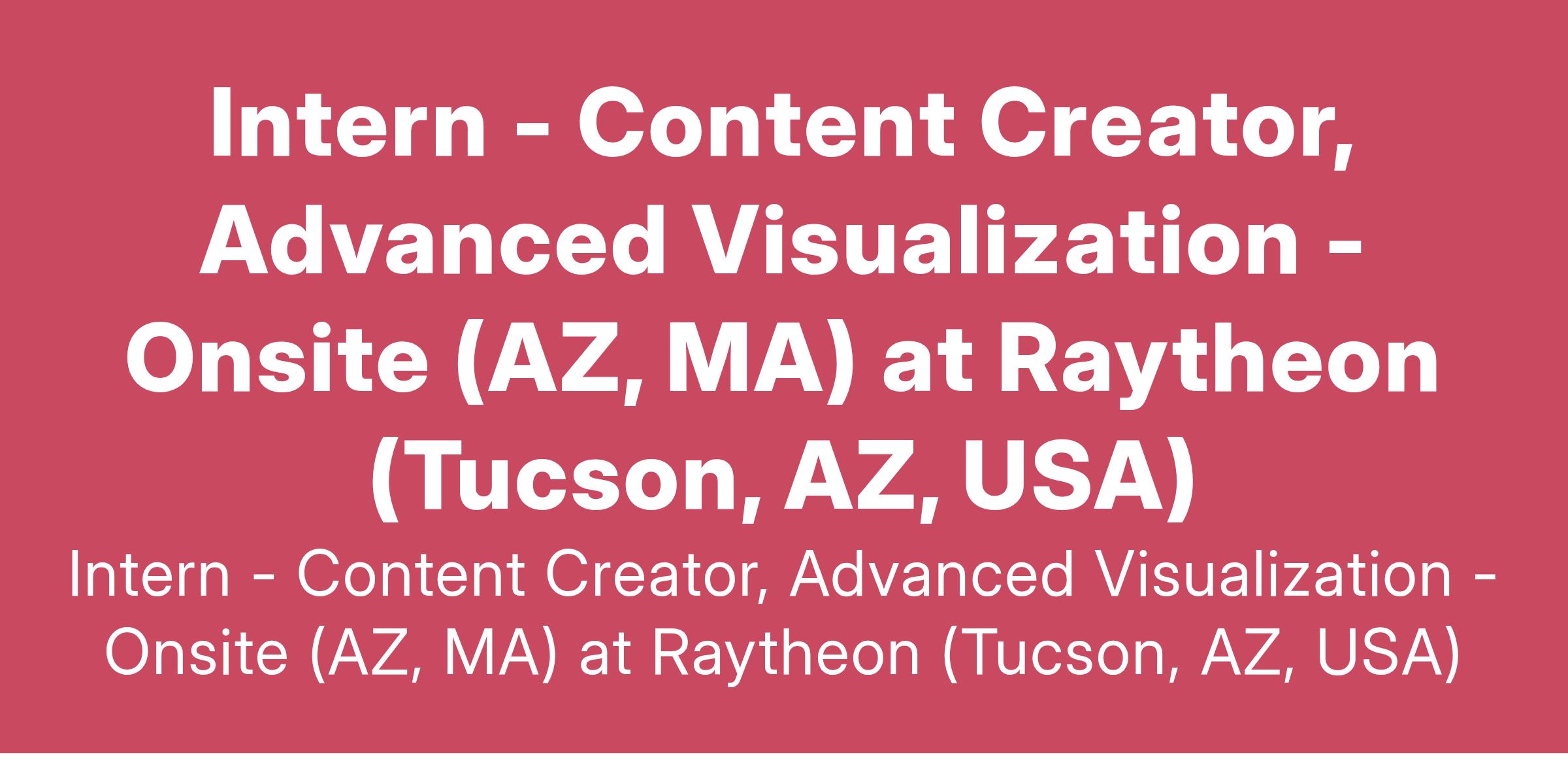 Intern - Content Creator, Advanced Visualization - Onsite (AZ, MA) at Raytheon (Tucson, AZ, USA)