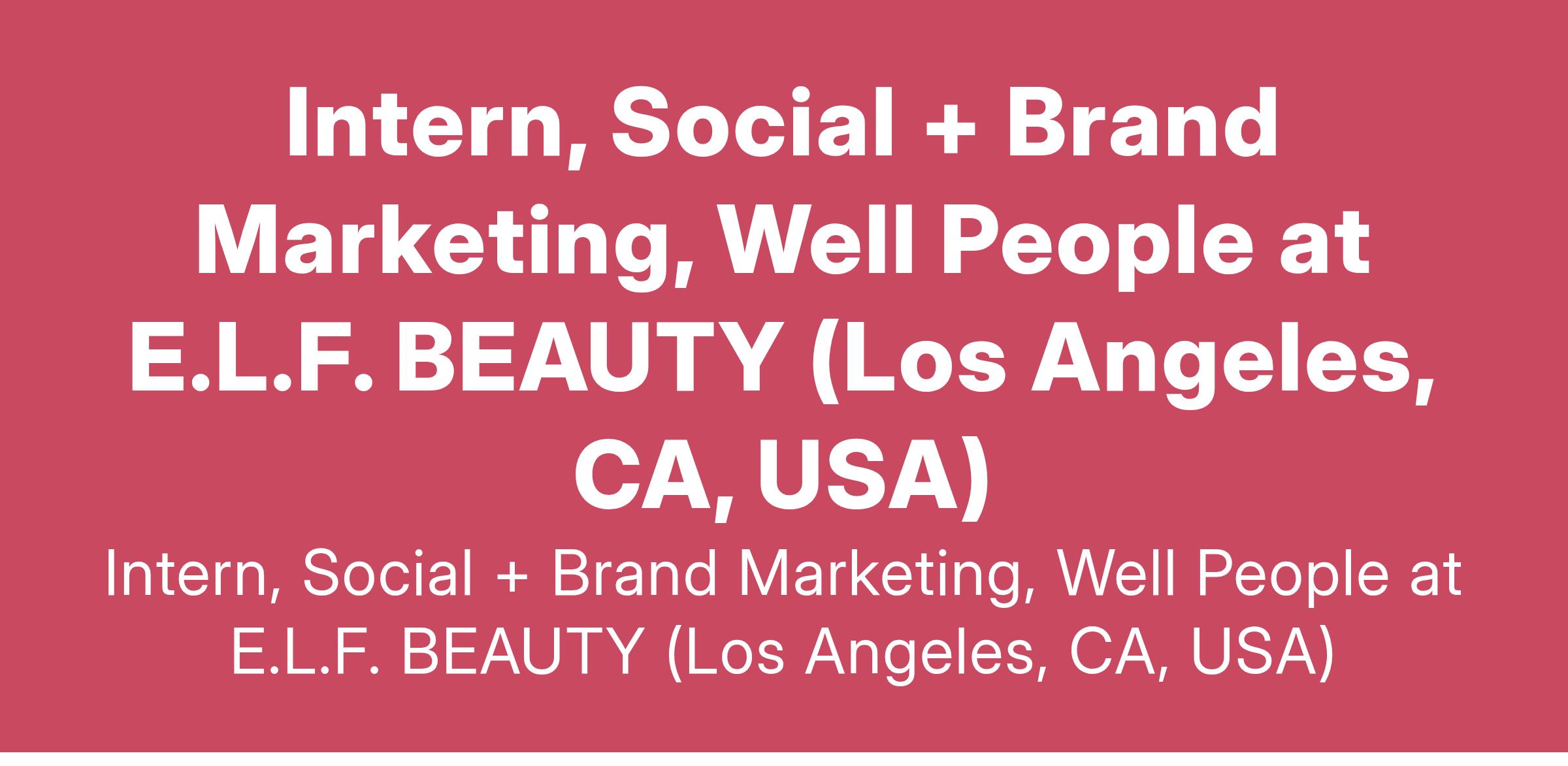 Intern, Social + Brand Marketing, Well People at E.L.F. BEAUTY (Los Angeles, CA, USA)