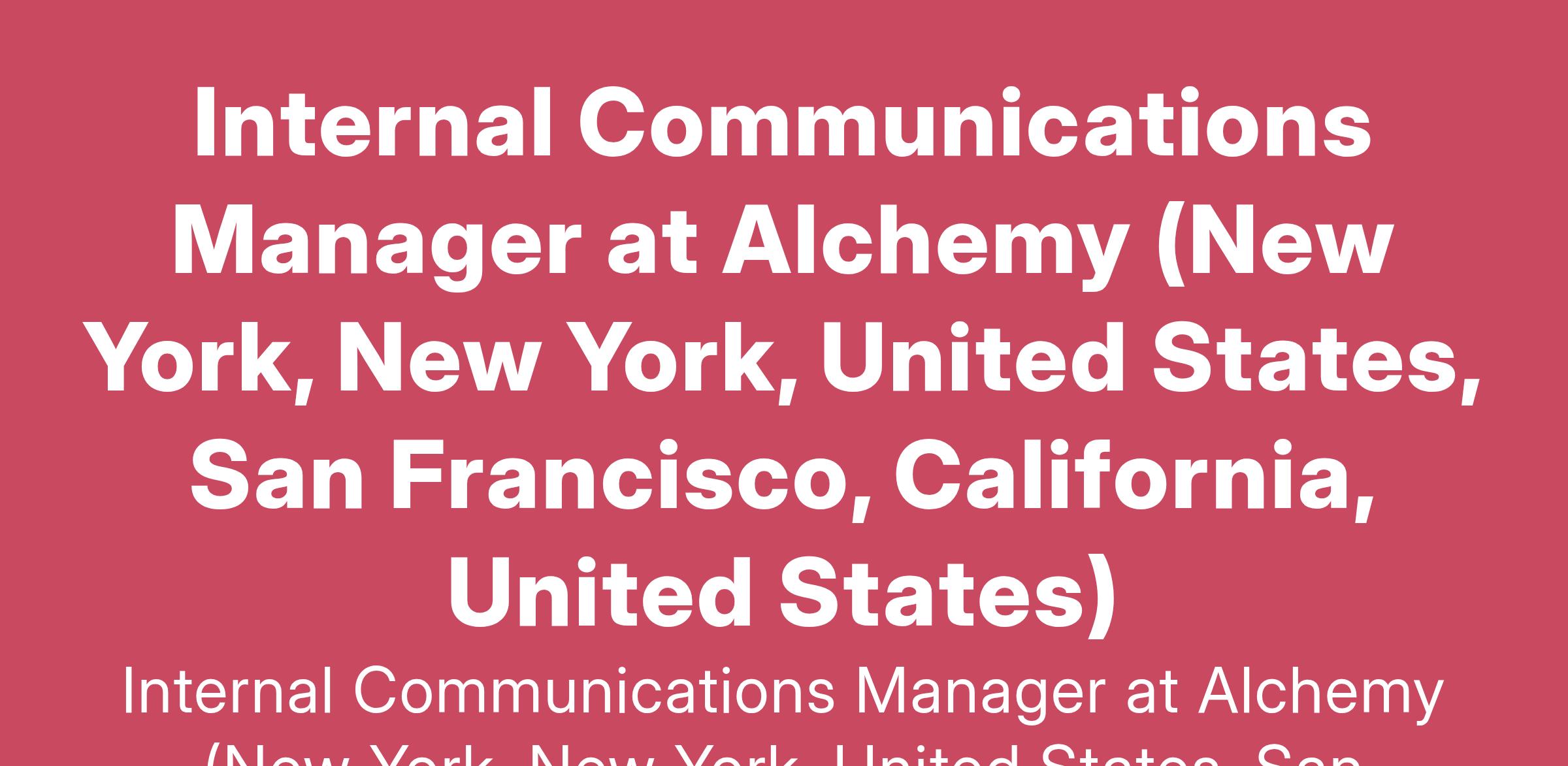 Internal Communications Manager at Alchemy (New York, New York, United States, San Francisco, California, United States)
