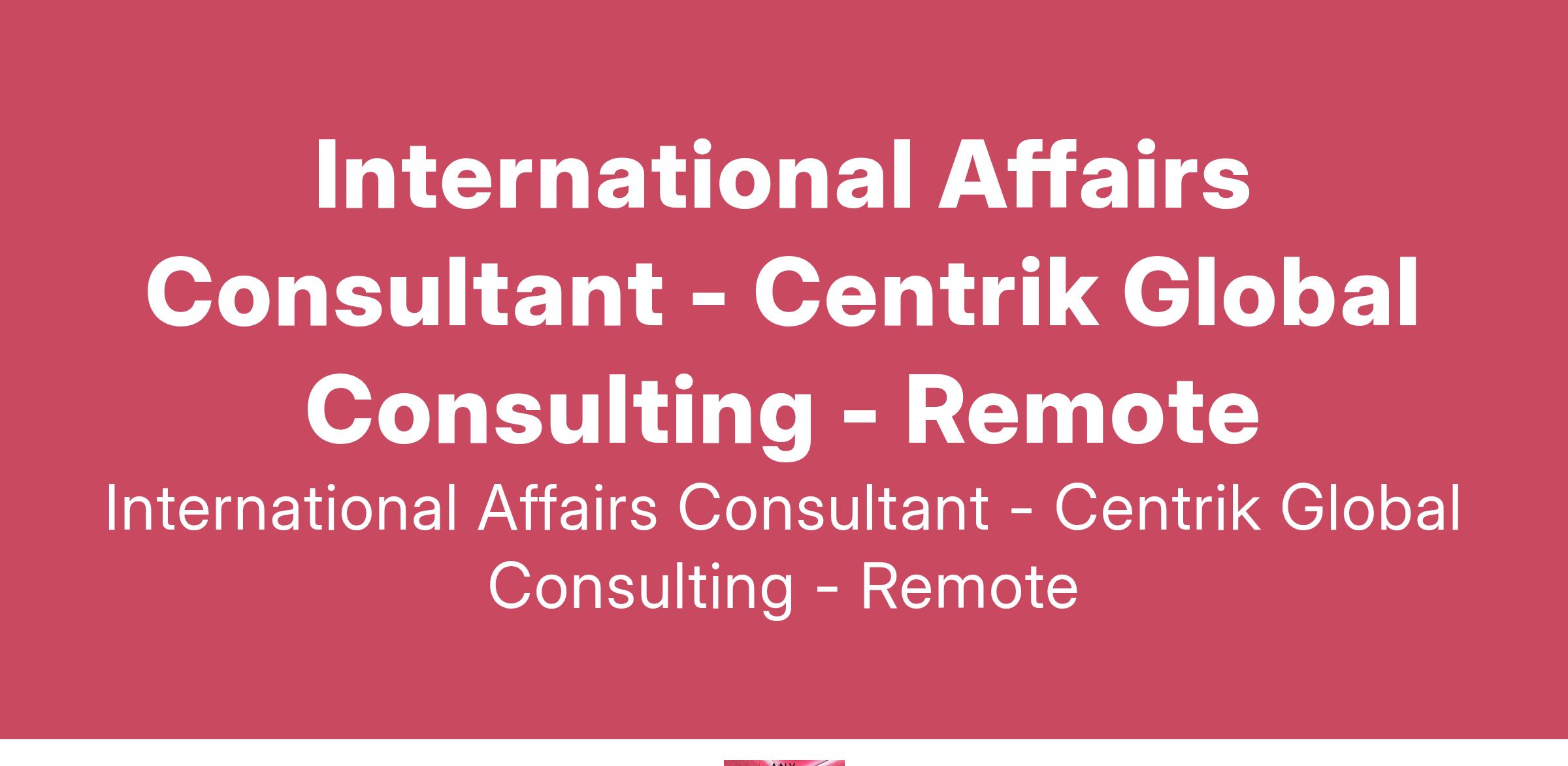 International Affairs Consultant need to provide expert advice and guidance in navigating complex global issues. As a consultant, you will be responsible for analyzing geopolitical trends, conducting research, and developing strategies to help clients navigate international relations. You should have a deep understanding of global politics, economics, and cultural dynamics. Strong analytical skills, excellent communication abilities, and a keen eye for detail are essential for success in this role.