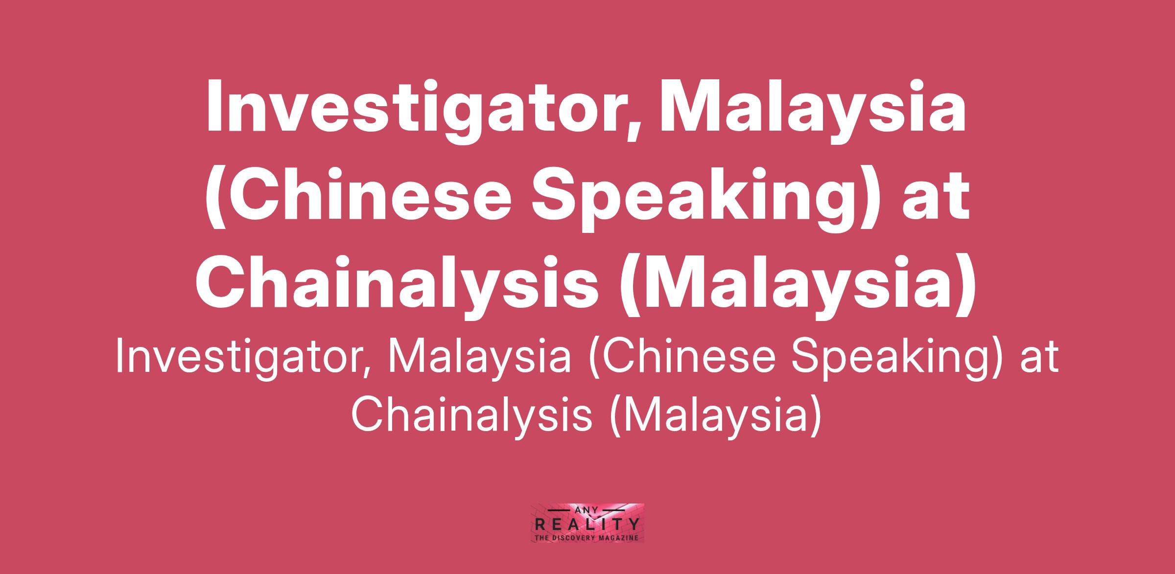 Investigator, Malaysia (Chinese Speaking) at Chainalysis (Malaysia)
