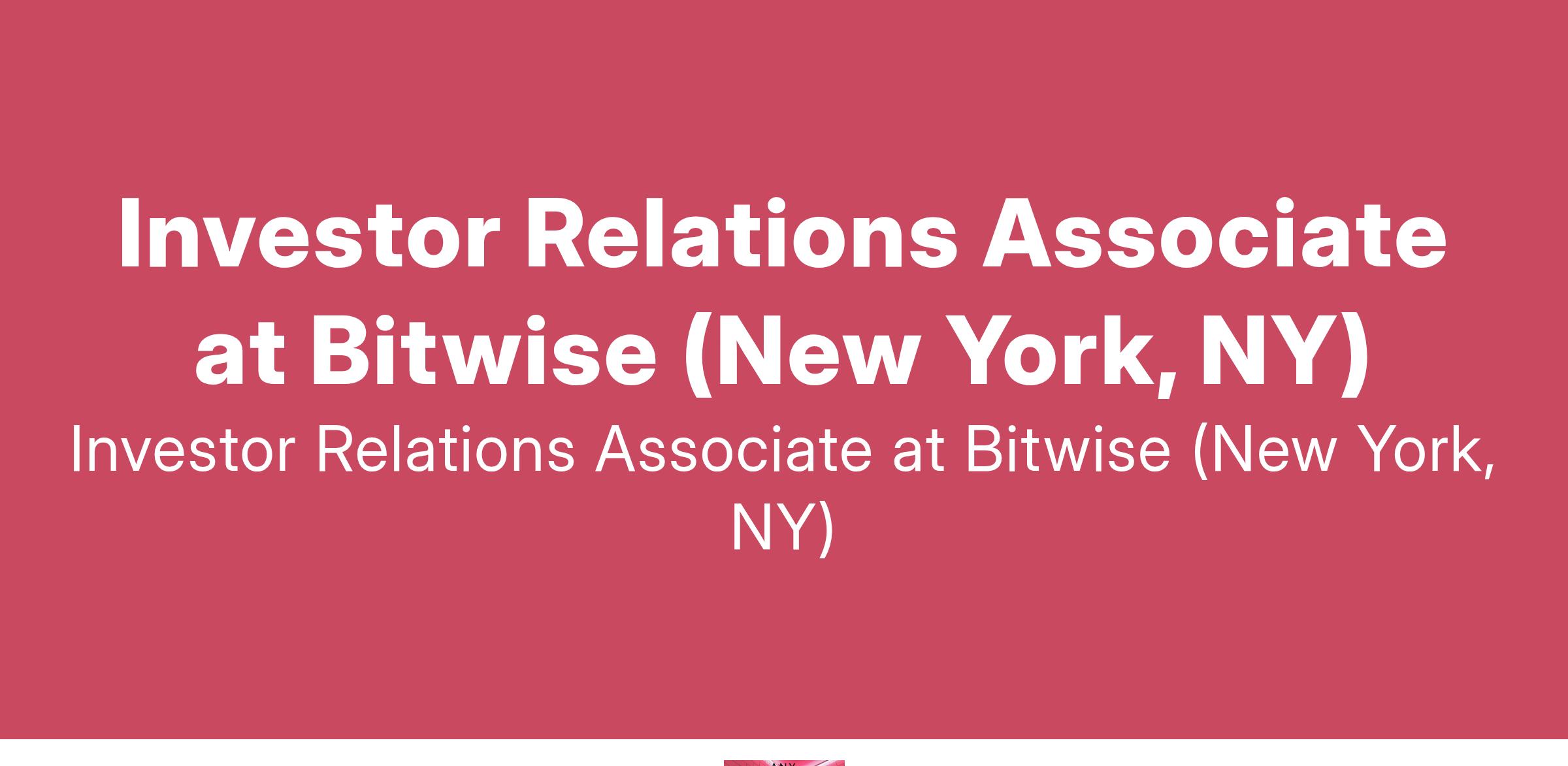 Investor Relations Associate at Bitwise (New York, NY)