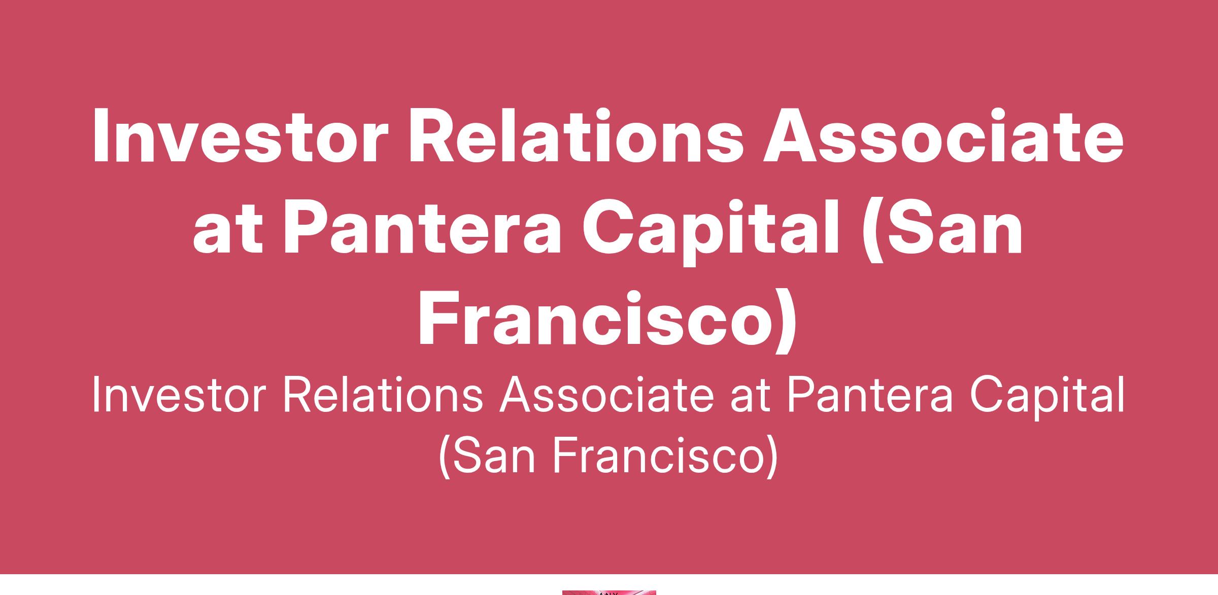 Investor Relations Associate at Pantera Capital (San Francisco)