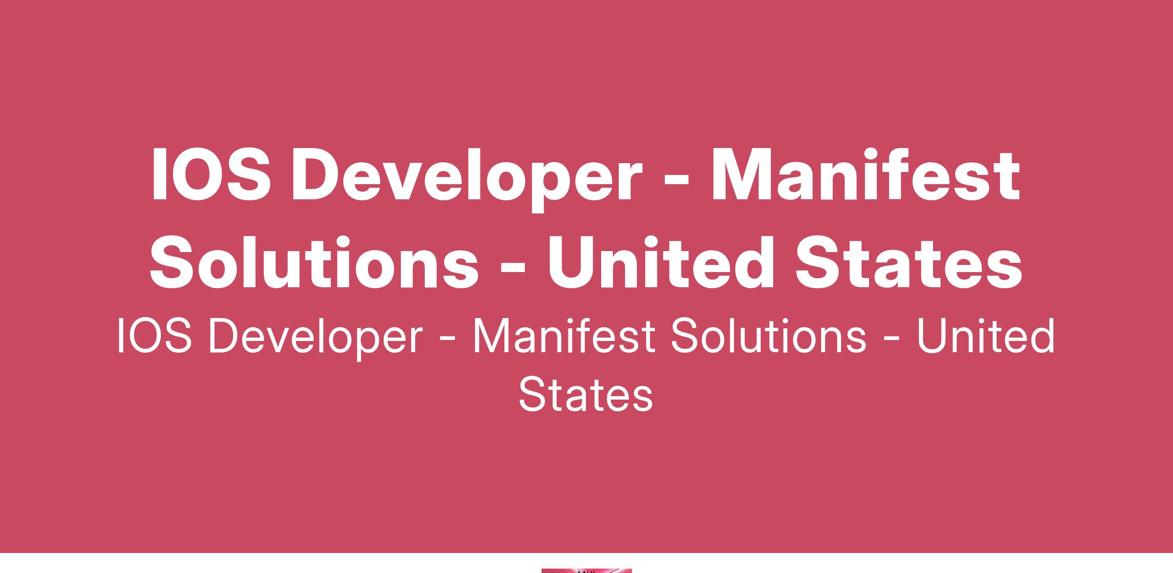 Manifest Solutions is currently seeking an iOS Developer for a remote position.