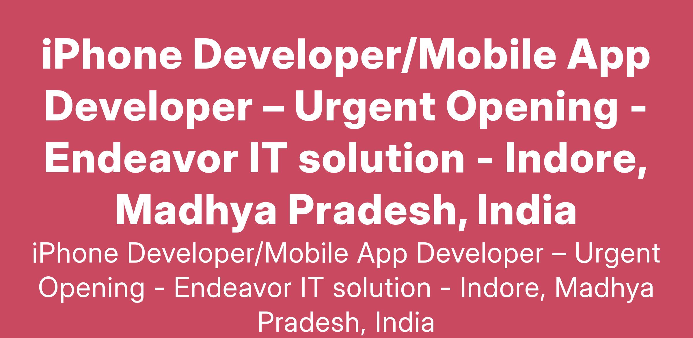 Endeavor IT Solution welcomes the candidates who has good knowledge of mobile application development using iPhone and Android and has the ability to rapidly lift up new mobile technologies. Must have In-depth knowledge of iPhone Android technology, good Application Architecture.