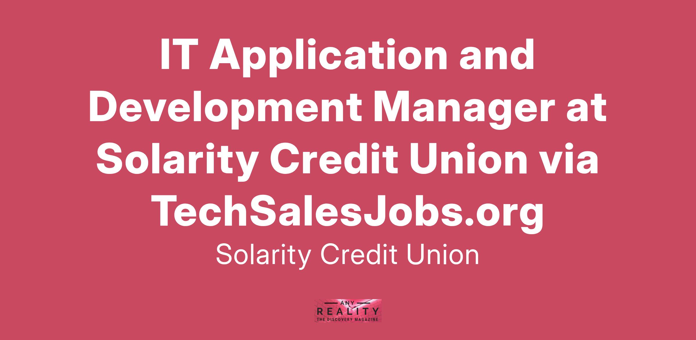 IT Application and Development Manager at Solarity Credit Union via TechSalesJobs.org