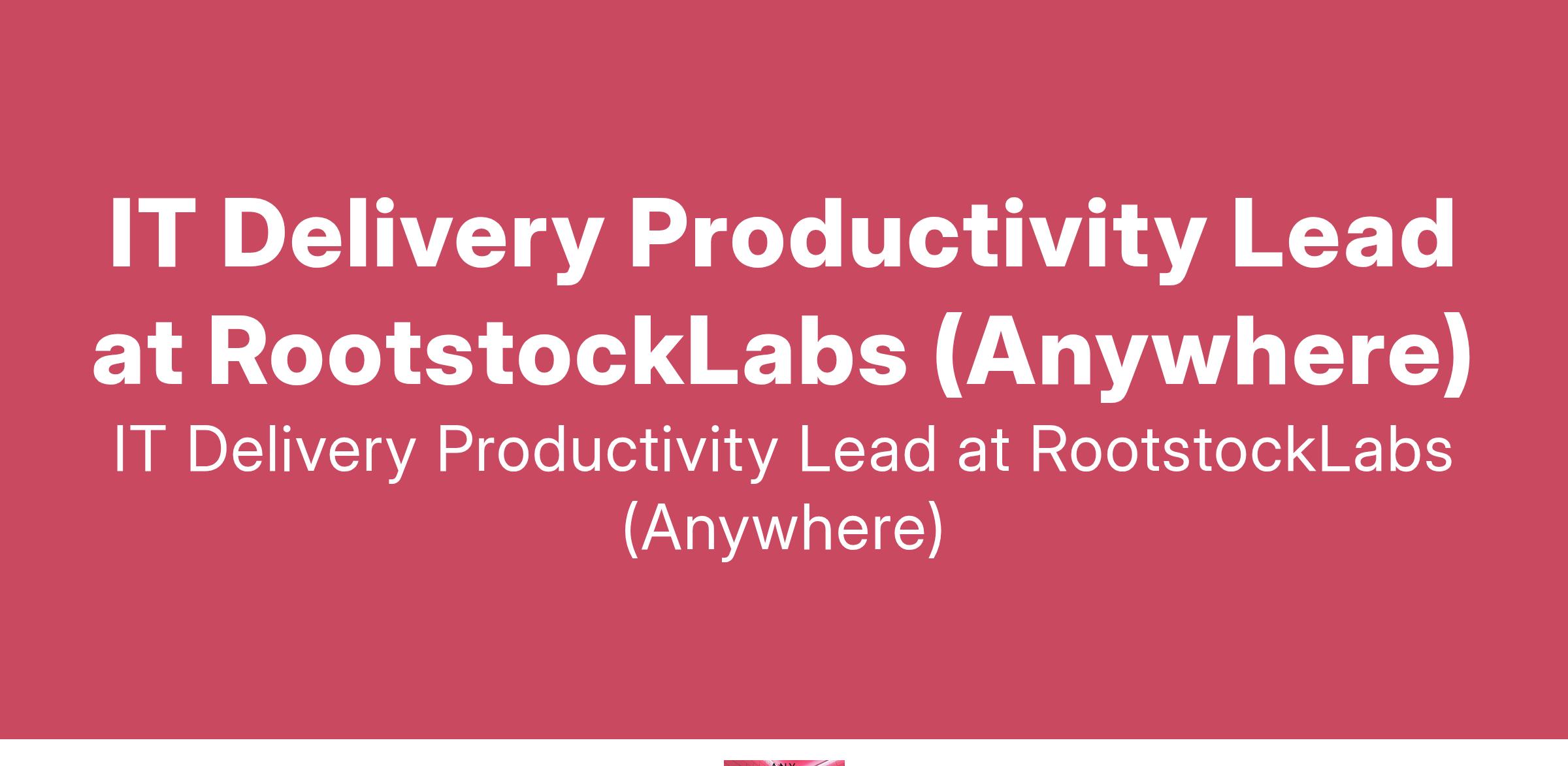 IT Delivery Productivity Lead at RootstockLabs (Anywhere)