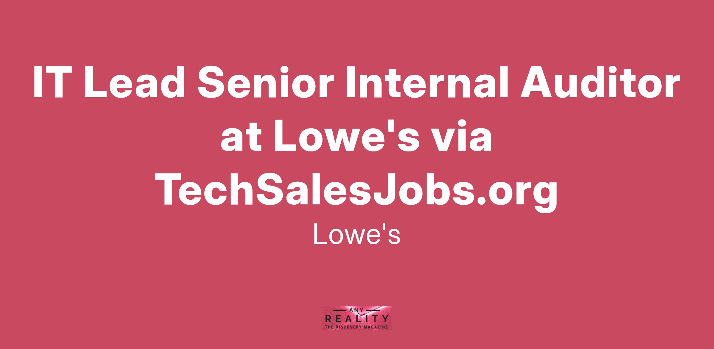 IT Lead Senior Internal Auditor at Lowe's via TechSalesJobs.org