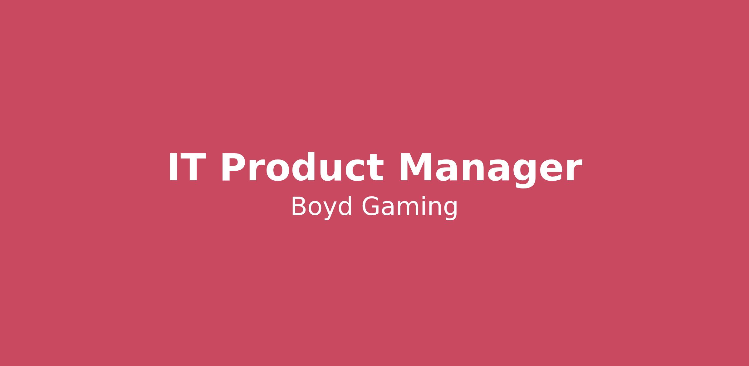 Company DescriptionBoyd Gaming Corporation has been successful in gaming jurisdiction in which we operate in the United States and is one of the premier casino entertainment companies in the United States. Never content to rest upon our successes, we will continue to evolve and retain a position of leadership in our industry. Our past success, our current business philosophies and our sound business planning, combine to position Boyd Gaming Corporation to maximize value for our shareholders, our team members and our communities.Job DescriptionSenior Management position responsible for introducing, managing and evolving enterprise suite of products that provide a foundation for collaboration and information presentation. Coordinates with vendors and internal customers to provide project coordination, installation, support & testing, reporting, and other support as needed.Provide guidance and leadership to all levels of staff as required.Assign personnel to projects and assignments, directing priorities to ensure the timely completion of them,Develops and designs support operations and processes.Actively participates in management and leadership meetings.Approves design solutions/tested methodologies and ensures that appropriate documentation Is prepared.Effectively uses appropriate tracking, metrics and reporting systems to manage, report and escalate issues.Interacts with other IT team members to ensure successful and smooth completion of projects.Regularly meets with users, vendors and IT staff to develop/modify system specifications.Able to clearly and effectively interpret IT and technical Information for communication to upper management, keeping them well informed of activities, needs or problems.Focuses on staff technical and professional development.Ensures that all teamwork conforms to established P&P's, along with staff compliance to regulatory requirements.Keeps staff up to date and informed on new/revised P&Ps. Establishes and monitors standards of performance for staff. Performs risk assessments and develops corrective actions.Develops and prepares reports, business case analysis as requested.Hires and transitions employees to maintain appropriate staffing levels.Directs the creation and approval of P&Ps.Evaluates employee job performance according to established standards.Anticipate and identify issues that may negatively Impact business and develop/implement technology-based solutions.Support all aspects of IT projects including analysis, design, development, installation and implementation.Ensure systems meet current and future business needs.Work with IT vendors and other outside contacts on development and service relationships.Forward thinker who designs for not only current business needs but, plans for scalability and longer-term solutions.Teamwork oriented- must be a team player willing to help others while also fostering their help in return.Must be able to multi-task and Juggle multiple priorities while ensuring successful completion of all Items,Manage product operations and 3rd party suppler relationships.Coordinating with the groups of business unit who test, validate, evaluate new applications and functions, and determine issues in services and software.Determines customers' needs and desires by specifying the research needed to obtain market information.Recommends the nature and scope of present and future product lines by reviewing product specifications and requirements, appraising new product ideas and/or product or packaging changesAssesses market competition by comparing the company's product to competitors' products.Completes operational requirements by scheduling and assigning employees, following up on work results.Maintains product management staff by recruiting, selecting, orienting, and training employees.Maintains product management staff job results by counseling and disciplining employees; planning, monitoring, and appraising job results.Maintains professional and technical knowledge by attending educational workshops; reviewing professional publications; establishing personal networks; participating in professional societies.Defines and establishes the product vision, goals, supporting business metrics, and success Indicators to ensure cross teams understand the business objectives.QualificationsMust live in Las VegasMust have Salesforce and Marketing experience Ability to act as a central point of contact responsible for all products considered enterprise-level collaboration, business intelligence or equivalent systems as assigned to the team7+ years of product management experience; Ideally managing at least one product through an entire development cycle starting from concept to launchResults driven "get It done" personality, able to balance multiple projects as second natureDisciplined organization and project management skills, with acute attention to detail and an ability to asl< the questions nobody else has askedProven analytical skills and a superior ability to use data in order to drive decision-making and feature prioritizationExperience managing project ambiguity, complexity and interdependencies in a methodical and structured wayStrong ability to partner with business to set and evolve enterprise content management strategies, roadmaps and product selection, as well as suggest process improvements to streamline proceduresTechnical or computer science background strongly preferredExperience evaluating project requests and proposals for viability, assist with requirements definition, and advise on potential impacts to existing applicationsAbility to participate with Project Management and other teams to estimate total project cost if necessaryAbility to work closely with Project Managers to ensure that projects remain on targetPassionate about keeping abreast of emerging business and technological trends.Ability to regulate provisioning of resources while providing project leadership to Identify available solutions, project cost, reso