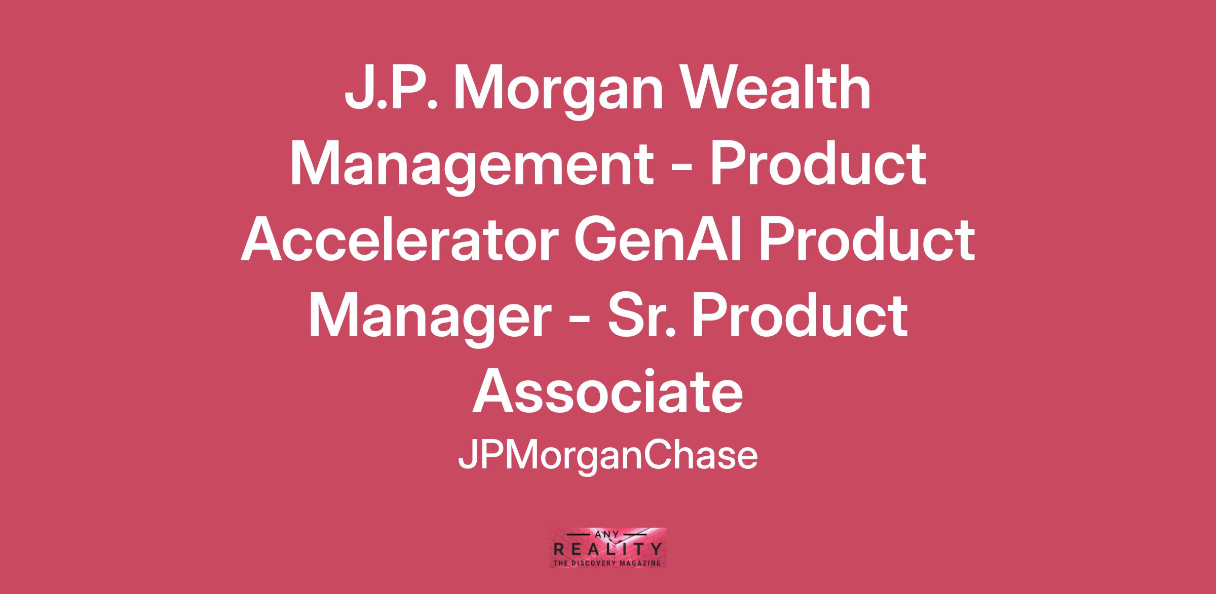DescriptionThe J.P. Morgan Wealth Management (JPMWM) business is focused on helping investors achieve their long-term financial goals and is comprised of the Chase wealth management business, J.P. Morgan Securities and Online Investing - our digital investing platform. The combined business has ~$400 billion in assets under management and ~4,500 advisors who work out of 3,500 branches and 21 offices. Digital Product Strategy & Acceleration is part of the Product Acceleration Garage (PAG) in Wealth Management Product & Experience. This team takes new and innovative ideas and turns them into real, tangible technologies from concept all the way to launch. We develop the strategic vision, prioritize our roadmap, and quickly build and test our proof-of-concepts. Our team works across US Wealth Management to develop the next generation of advanced technology and bring them to market.The Senior Product Associate will play a pivotal role in all aspects of a product cycle, from evaluating the business value and time to market, to defining product requirements, and to being a driving force behind rapid iteration and experiment. The role is perfect for individuals who are not only excited about the latest technology and trends, but also possess strong capabilities of problem solving, strategic thinking, multi-tasking, communication, and collaboration with various businesses and functional areas across J.P. Morgan Wealth Management. Job Responsibilities:Collaborate with product manager and other stakeholders to define product strategy, business value, and MVP scope based on customer insights and market researchWrite product requirements in collaboration with Technology, Design, Data & Analytics to deliver the productAct as a thought leader on the product design and execution while maintaining keen awareness of industry landscapeIntegrate data analytics, product metrics, user experience research, competitive and market analysis, and company goals to drive prioritization of product featuresCommunicate effectively across functions and levels about product vision, timeline, deliverables, etc., including to senior leadershipDemonstrate self-motivation and a commitment to acquiring new knowledge and technology trendsRequired qualifications, capabilities, and skills:3+ years of experience in financial services or digital product management, preferably with experience in wealth management, financial planning, asset management, digital banking, or a closely related business managing strategic or transformational changePassionate about new industry trends and on constant look out for AI evolvementExperience being part of a delivery team that spans multiple work streams with varying timelines, priorities and complexities, ultimately launching a new / enhanced product to marketAdvanced user of Jira or other Product toolsAbility to prioritize tasks, say ‘no’ when required, and ensure our organization is on track to execute against product roadmap and deliver strategic change that meets our goalsExperience leading cross-functional teams, developing a clear path forward form diverse points of view Structured thinker, effective communicator with excellent written communication skillsHighly self-motivated with the ability to take initiative, problem solve, and excel in ambiguityAbility to ask intelligent questions that push the team further regardless of titlePreferred qualifications, capabilities, and skills:M.B.A. or graduate degree in relevant field desiredPrevious experience in management consulting or digital product desired To be eligible for this position, you must be authorized to work in the United States. We do not offer any type of employment-based immigration sponsorship for this position. Likewise, JPMorgan Chase & Co., will not provide any assistance or sign any documentation in support of any other form of immigration sponsorship or benefit including optional practical training (OPT) or curricular practical training (CPT).