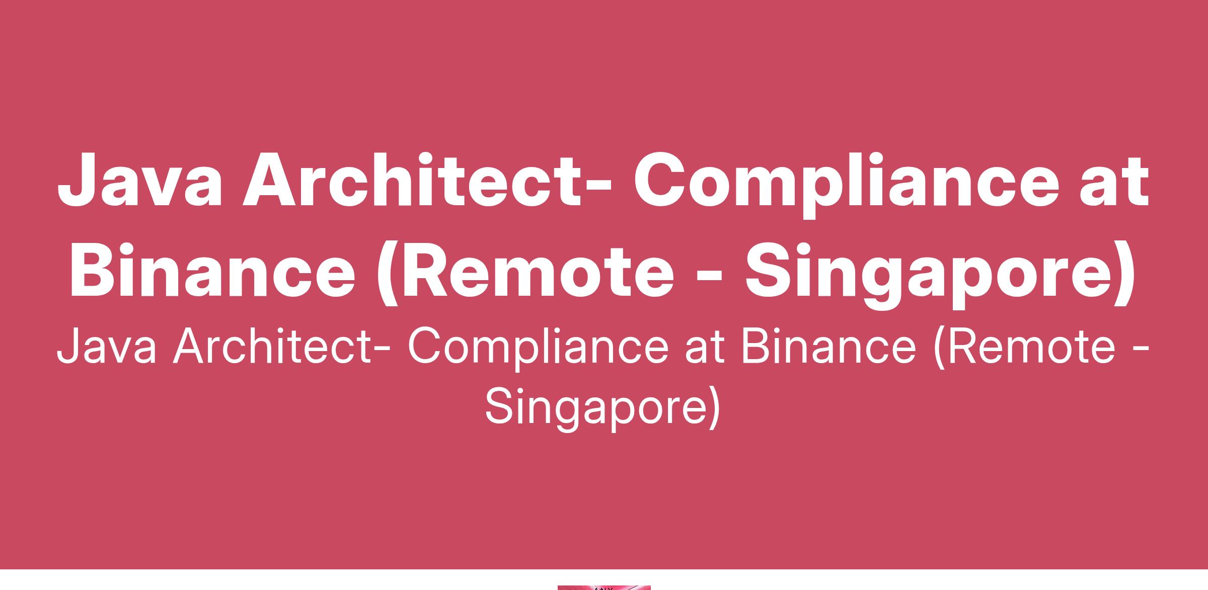 Java Architect- Compliance at Binance (Remote - Singapore)