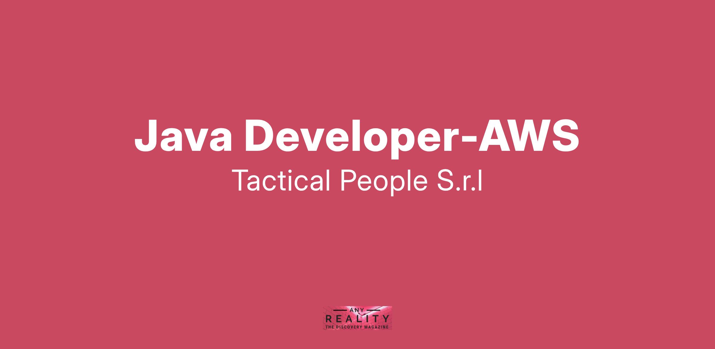 Unisciti a TACTICAL PEOPLE: Innovazione, Persone e Crescita nel Cuore della Digital Transformation Da oltre 20 anni, TACTICAL PEOPLE si posiziona come leader nel mercato ICT, guidando con passione e competenza i nostri clienti di medie e grandi dimensioni attraverso il dinamico percorso della digital transformation. La nostra mission è chiara: non solo abbracciare il cambiamento tecnologico, ma guidarlo, creando soluzioni all'avanguardia che plasmino il futuro digitale. In TACTICAL PEOPLE, crediamo fortemente nel mettere le persone al centro di ogni nostra iniziativa. Le persone sono il cuore pulsante della nostra azienda; il loro benessere, la loro crescita e il loro sviluppo sono la nostra priorità. Ci impegniamo a condividere le strategie aziendali con trasparenza e a fornire formazione e supporto a ogni livello, garantendo che ogni membro del team sia equipaggiato per eccellere e innovare. Stiamo cercando individui che condividano la nostra visione, che siano guidati dalla passione per la tecnologia e che desiderino essere protagonisti nella costruzione di un futuro digitale più luminoso. Se sei pronto a far parte di una squadra che valorizza il talento, incoraggia la crescita personale e professionale e lavora in prima linea nel settore della digital transformation, TACTICAL PEOPLE è il posto giusto per te. Posizione Aperta: Java Developer-AWS Sede: Remoto Descrizione del ruolo: Il candidato ideale ha una solida competenza nella programmazione in Java, nella progettazione di architetture scalabili e nell’integrazione di servizi cloud per garantire alte prestazioni e sicurezza. Cosa offriamo: Inserimento immediato in una Tech Community giovane e dinamica. TACTICAL LEARNING HUB, con corsi di aggiornamento e formazione. Il presente annuncio è rivolto ad entrambi i sessi, ai sensi delle leggi 903/77 e 125/91, e a persone di tutte le età e tutte le nazionalità, ai sensi dei decreti legislativi 215/03 e 216/03. I curricula dovranno pervenire completi di dicitura che autorizza il trattamento dei propri dati: “Si autorizza al trattamento dei dati personali ai sensi del D. Lgs. 196/2003.