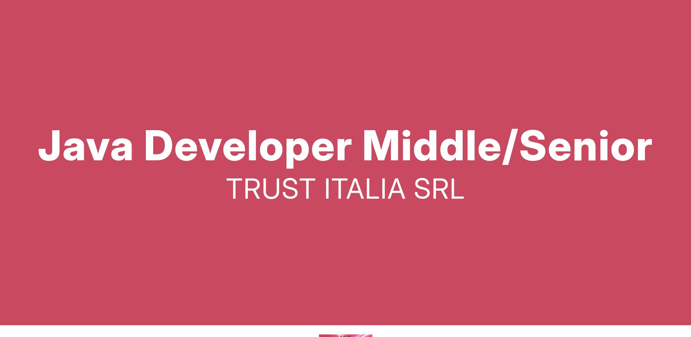 Trust Italia Srl è una società di consulenza informatica nata da professionisti del settore di decennale esperienza offre soluzioni globali per l’informatica negli ambienti web e non solo. Soluzioni che sono il punto d’incontro tra un ampio bagaglio di competenze progettuali e le più avanzate metodologie di sviluppo. Genera valore nelle aziende fornendo soluzioni in grado di far funzionare il loro business. Trust Italia ha un forte Know How in ambito bancario / Assicurativo nonché è fortemente legata allo sviluppo di applicativi custom per tutti gli altri settori tra cui : Servizi, Oil&gas, Sanità. Attualmente stiamo cercando: 1 JAVA DEVELOPER Disponibilità immediata e/o a breve.