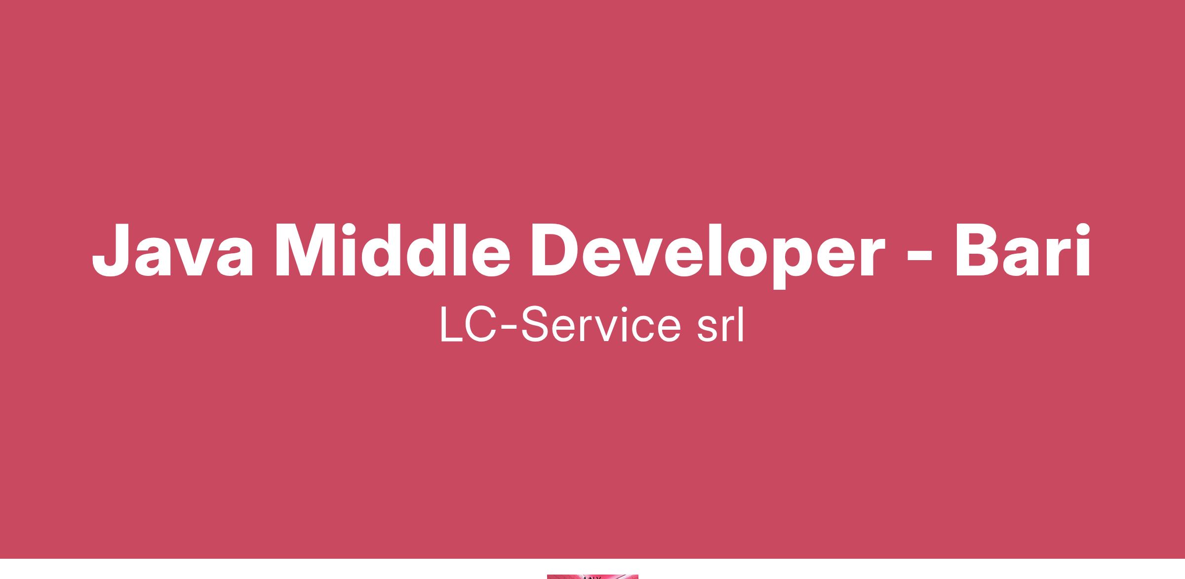 LC-Service nasce da un'esperienza decennale nel settore informatico. Il costante contatto con differenti settori (Banking & Finance, Insurance, Industry, Energy, Automotive) costituisce la base per il Team di specialisti a disposizione dei nostri Clienti. La nostra presenza sul mercato è trasversale: operiamo all'interno dei maggiori settori spaziando dall'ambito finanziario a quello automobilistico. Le persone sono la nostra risorsa più importante. Per un importante progetto siamo alla ricerca di una risorsa: Java Developer Middle. Requisiti Tecnici: - Java 8-21 - Spring - Hibernate - Git - Jenkings - Jpa Completano il profilo la predisposizione al lavoro in team. Per la posizione è mandataria la residenza nella provincia di Bari o zone limitrofe. Se interessati alla posizione è possibile candidarsi anche sul nostro portale tramite il link: https://careers.lc-service.it/careers/#/goToAds/833.