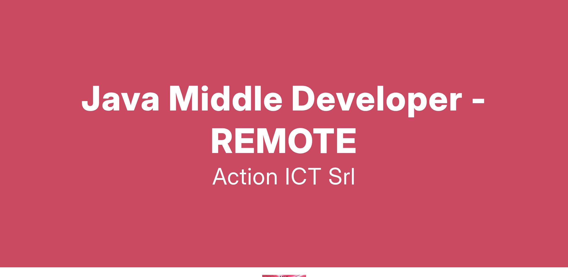 Rif.: 250113-JFR Action ICT is a growing private company in IT consulting and R&D services in finance, retail and telecommunication sectors. With a view of strengthening our team, we are looking for a JAVA MIDDLE DEVELOPER . JAVA MIDDLE DEVELOPER • Location: Full remote.