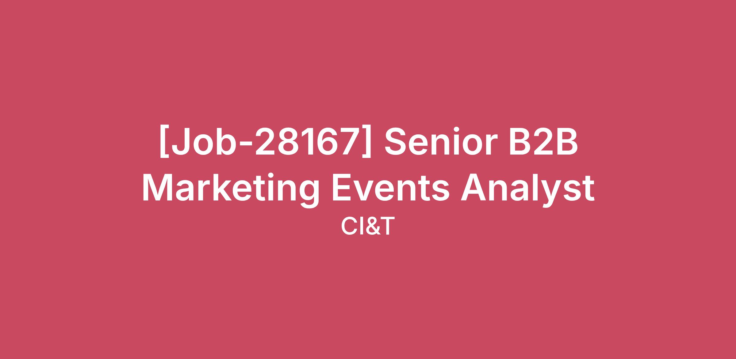 We are tech transformation specialists, uniting human expertise with AI to create scalable tech solutions.With over 8,000 CI&Ters around the world, we’ve built partnerships with more than 1,000 clients during our 30 years of history. Artificial Intelligence is our reality.\n\n$10,181 - $11,224 a monthThe Role CI&T is seeking a Senior B2B Events Specialist – North America to execute high-impact B2B executive events and industry conferences that support lead generation, pipeline development, and brand visibility. This role partners closely with marketing and sales teams to translate go-to-market priorities into compelling in-person and hybrid event experiences that engage enterprise buyers and prospects. The Senior B2B Events Specialist will manage execution of the North America events program, coordinate with internal stakeholders, and work closely with CI&T’s external events agency to deliver seamless experiences that contribute to pipeline development. The ideal candidate brings a strong operational mindset, excellent project management skills, and the ability to execute complex event programs that support demand generation and business growth. Salary range: $10,181 - $11,224 monthly Key Responsibilities Plan and execute a portfolio of B2B event programs across North America, including industry conferences, executive dinners, CXO roundtables, roadshows, CI&T-hosted events, and curated executive experiencesPartner with vertical marketing and sales leaders to align event programs with GTM priorities, target accounts, and regional growth initiativesSupport sales teams with pre-event targeting, invitation strategy, and outbound follow-through to maximize engagement with priority accountsIdentify new executive engagement opportunities and industry field activations that drive demand generation and pipeline developmentManage planning and coordination of the North America events calendar across conferences, executive programs, and regional activationsManage timelines, logistics, and deliverables across multiple concurrent eventsPartner with CI&T’s events agency and external vendors on planning, logistics, production, and on-site executionCollaborate with marketing team members in Brazil who support North America event executionTrack event performance and engagement metrics in collaboration with marketing operations and sales, including Leads, Meetings, and Pipeline InfluenceSupport post-event follow-up activities and insights to improve future event performance and pipeline impactTrack event budgets, manage expense reporting, and coordinate vendor invoices and payments to ensure accurate financial oversight of event programs Qualifications4–6 years of experience in B2B marketing events, event programs, or event operationsExperience in technology, consulting, or professional services environments strongly preferredProven experience executing conferences, trade shows, executive dinners, and executive engagement programs that support pipeline generationStrong project management skills with the ability to manage multiple complex events simultaneouslyExperience working with event agencies, venues, and vendorsExperience executing both hybrid and in-person event formats Location & TravelThis role is based in the San Francisco Bay Area (remote) and supports events across North America.Travel required: up to 40% for conferences and hosted client events, with occasional international travel to CI&T’s office in Campinas, Brazil.\nWhy join us?- Competitive Salary - Generous paid vacation days - Unlimited sick time - 100% paid health & dental benefits starting day one - Annual profit-sharing distribution - Retirement match - Paid parental leave - Dedicated career advisor - And so much more…Collaboration is our superpower, diversity unites us, and excellence is our standard. We value diverse identities and life experiences, fostering a diverse, inclusive, and safe work environment. We encourage applications from diverse and underrepresented groups to our job positions.