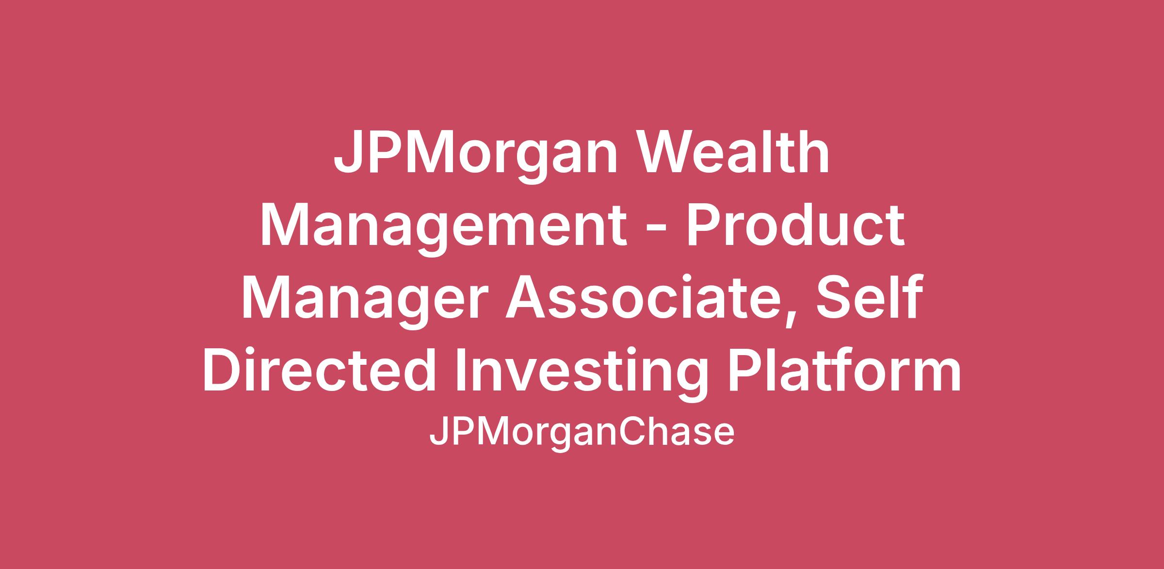 DescriptionThe J.P. Morgan Wealth Management (USWM) business is focused on helping investors achieve their long-term financial goals and is comprised of the Chase wealth management business, J.P. Morgan Advisors, Personal Advisors and Self-Directed - our digital investing platform. The combined business has ~$600 billion in Assets Under Management and ~5,000 advisors located across 3,500 branches and 20 offices.Join one of the world's most innovative financial organizations and make a significant impact as a Product Associate in JP Morgan Self-Directed Investing. Leverage user research, analyze metrics, and collaborate across teams to drive the creation and continuous improvement of our products. Unleash your expertise in product development and optimization by leveraging user research, analyzing metrics, and collaborating across one of the world's most innovative financial organizations.As a Product Associate in the self directed investing space, you contribute to the team by leveraging your expertise in product development and optimization to make a significant impact, supported by user research and customer feedback to fuel the creation of innovative products and continuously improve existing offerings. Collaborate closely with cross-functional teams and play a crucial role in shaping the future of our products and ongoing success. Job responsibilitiesPartners with the Product Manager to identify new product opportunities that reflect the needs of our customers and the market through user research and discoveryConsiders and plans for upstream and downstream implications of new product features on the overall product experienceSupports the collection of user research, journey mapping, and market analysis to inform the strategic product roadmap and provide insight on potential product features that provide value to customersAnalyzes, tracks, and evaluates product metrics including work to time, cost, and quality targets across the product development life cycleWrites the requirements, epics, and user stories to support product development Required qualifications, capabilities, and skillsAt least 2 years of experience or equivalent expertise in product management or a relevant domain areaProficient knowledge of the product development life cycleExperience in product life cycle activities including discovery and requirements definitionDeveloping knowledge of data analytics and data literacy Preferred qualifications, capabilities, and skillsExperience and interest in self-directed investing strongly preferred.Basic understanding of Margin lending and Options trading