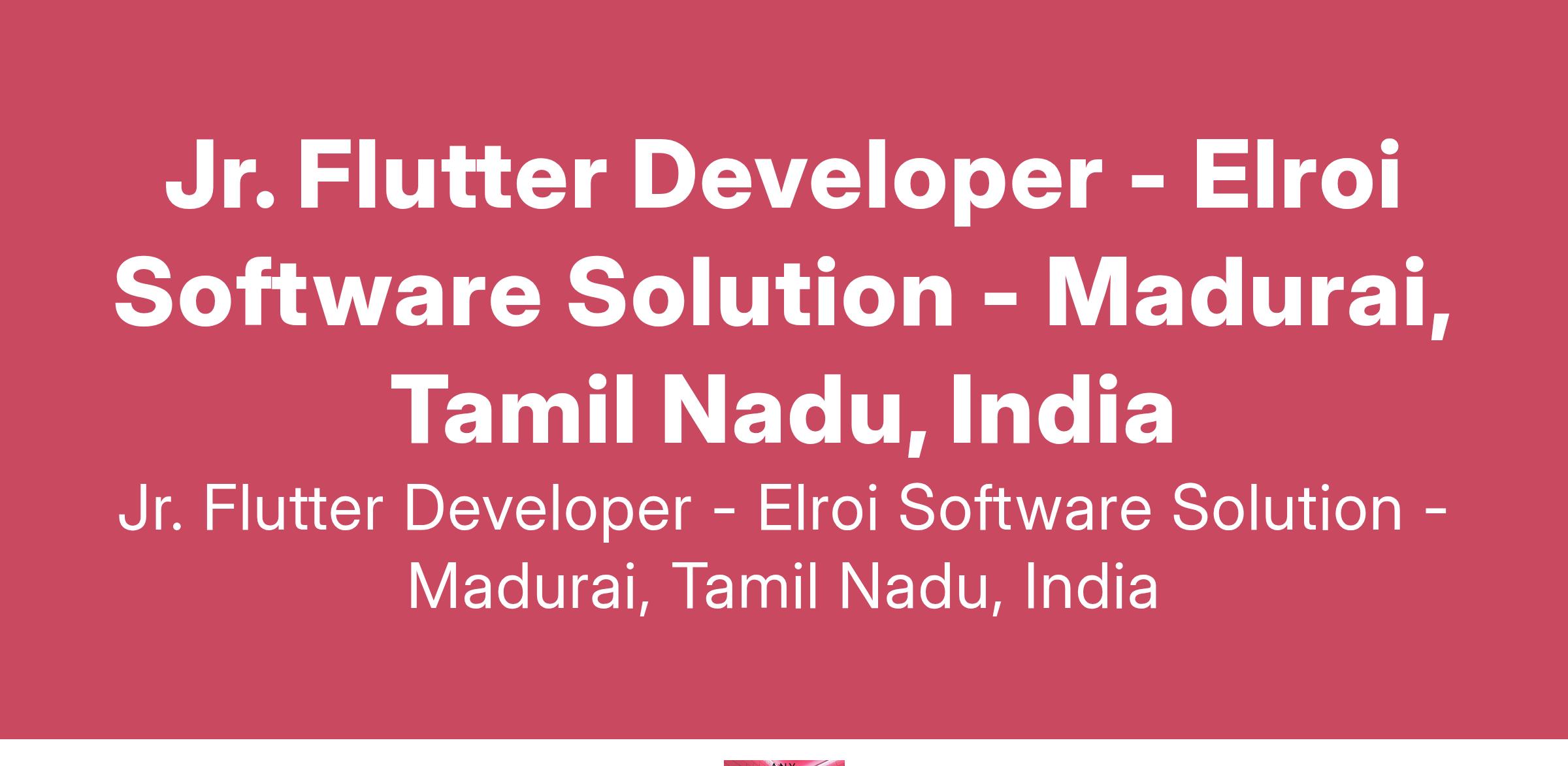We are seeking a skilled Junior Flutter Developer to join our team at Elroi Software Solution in Madurai. This is a full-time position for candidates with 1 to 3 years of experience in Flutter development. The ideal candidate will be involved in mobile application development and must have a strong understanding of the Flutter framework, Dart programming, and Firebase integration.