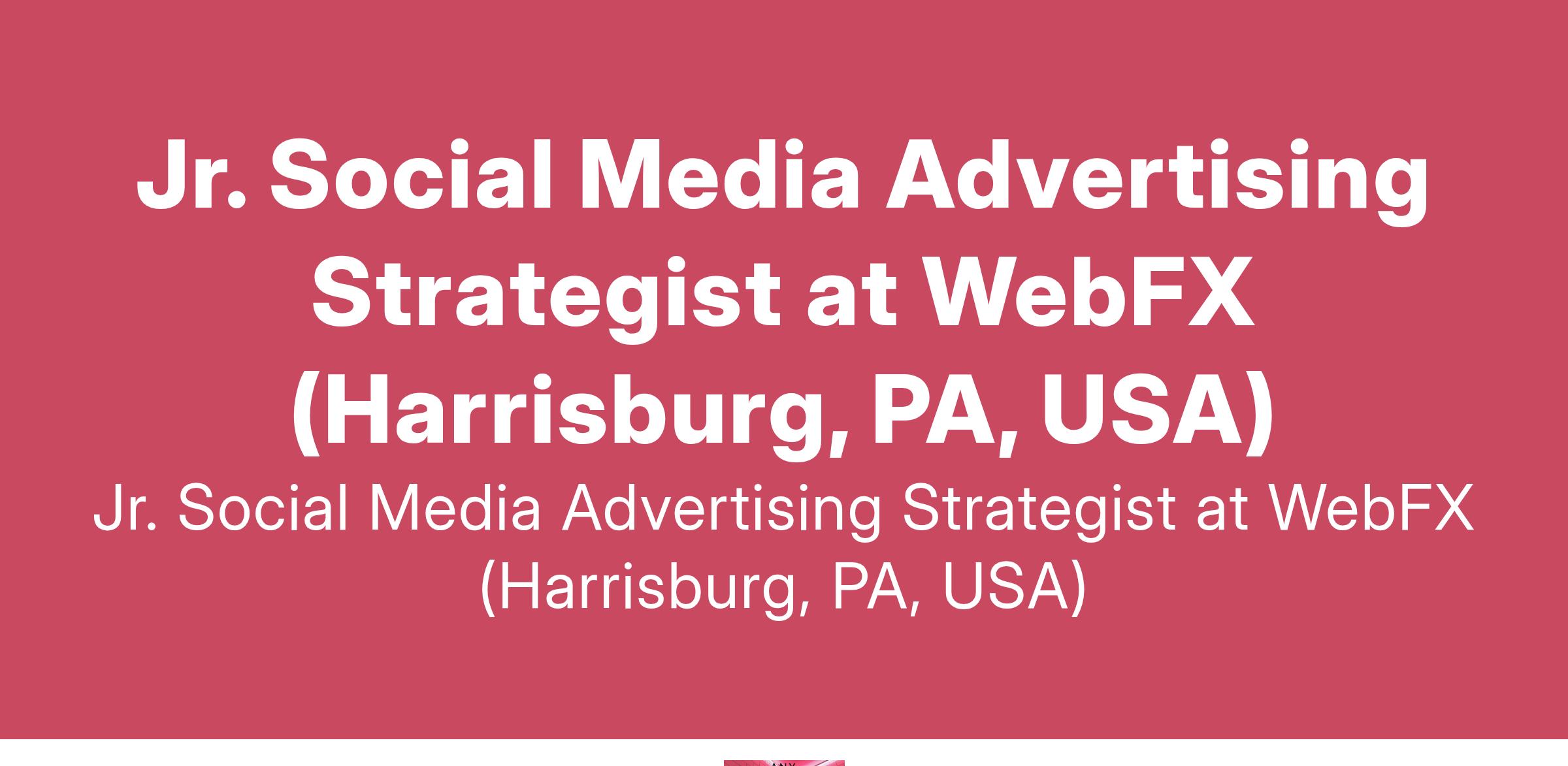 Jr. Social Media Advertising Strategist at WebFX (Harrisburg, PA, USA)