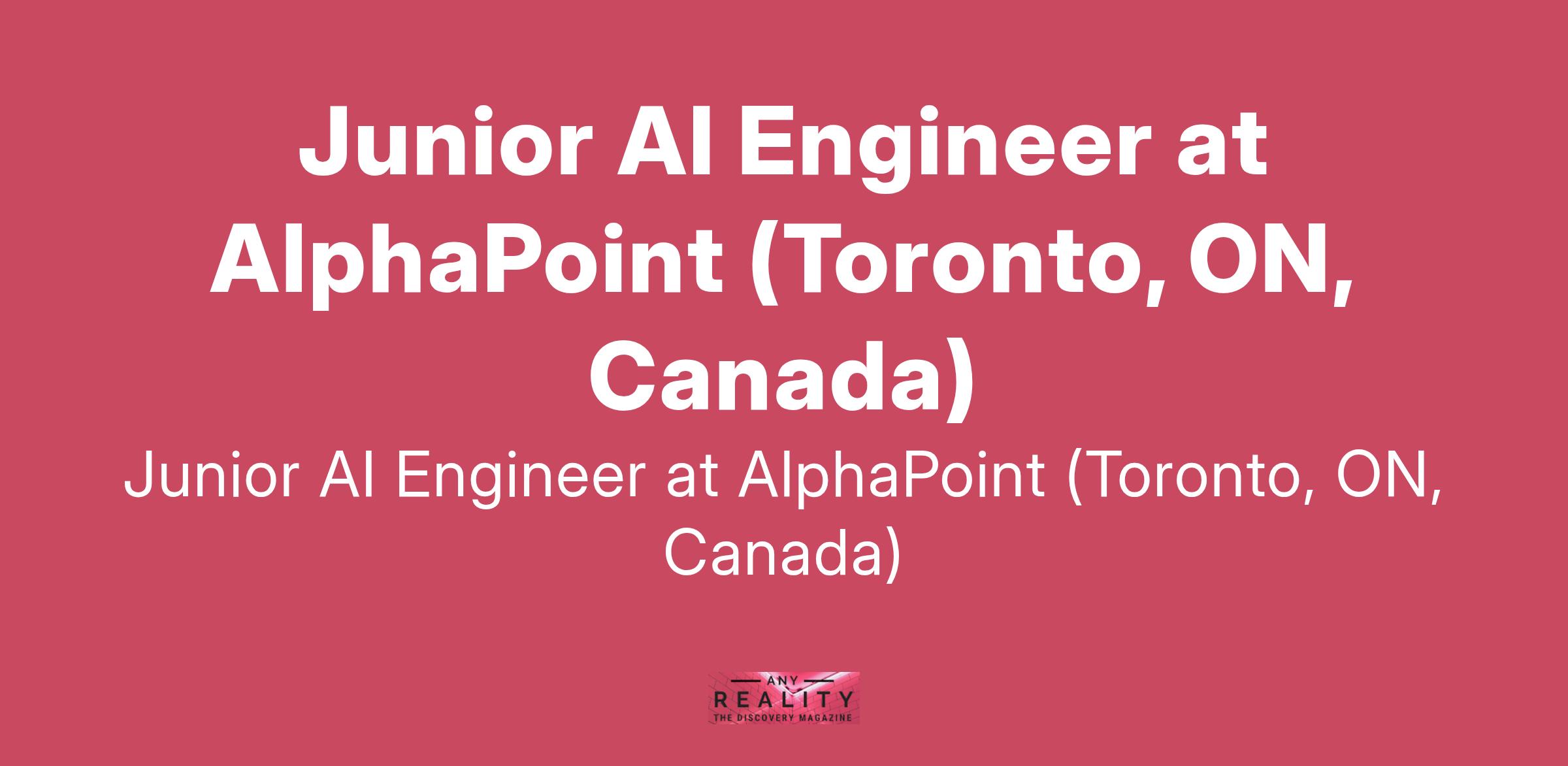 Junior AI Engineer at AlphaPoint (Toronto, ON, Canada)