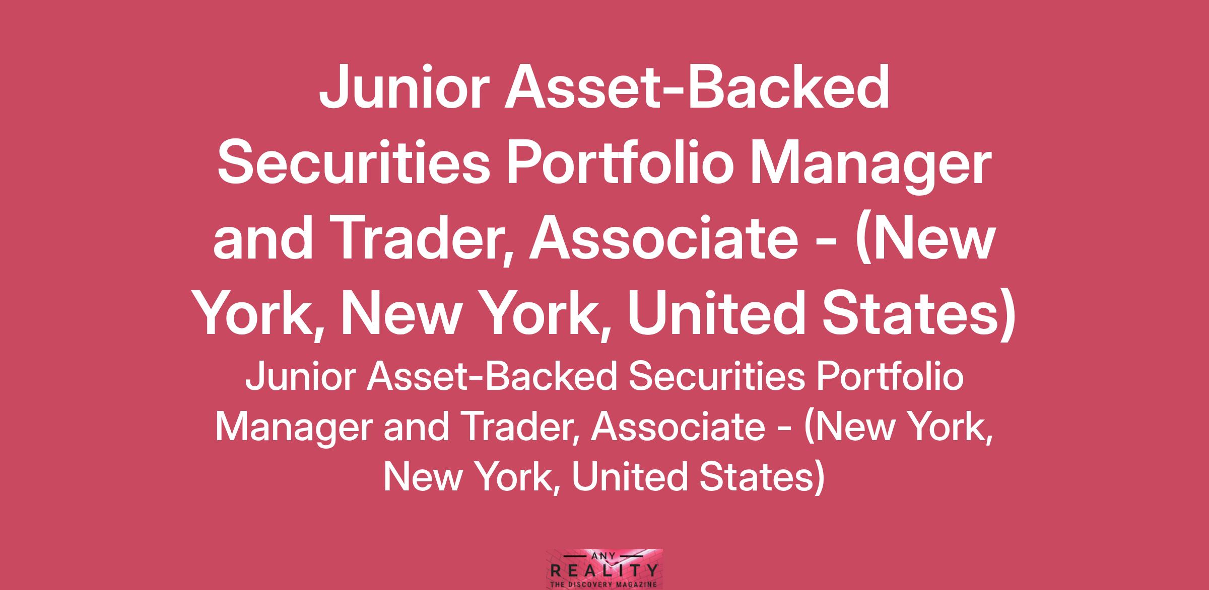 Our Securitized Assets Portfolio Management Team is searching for a Junior Asset-Backed Securities Portfolio Manager and Trader based in New York City.