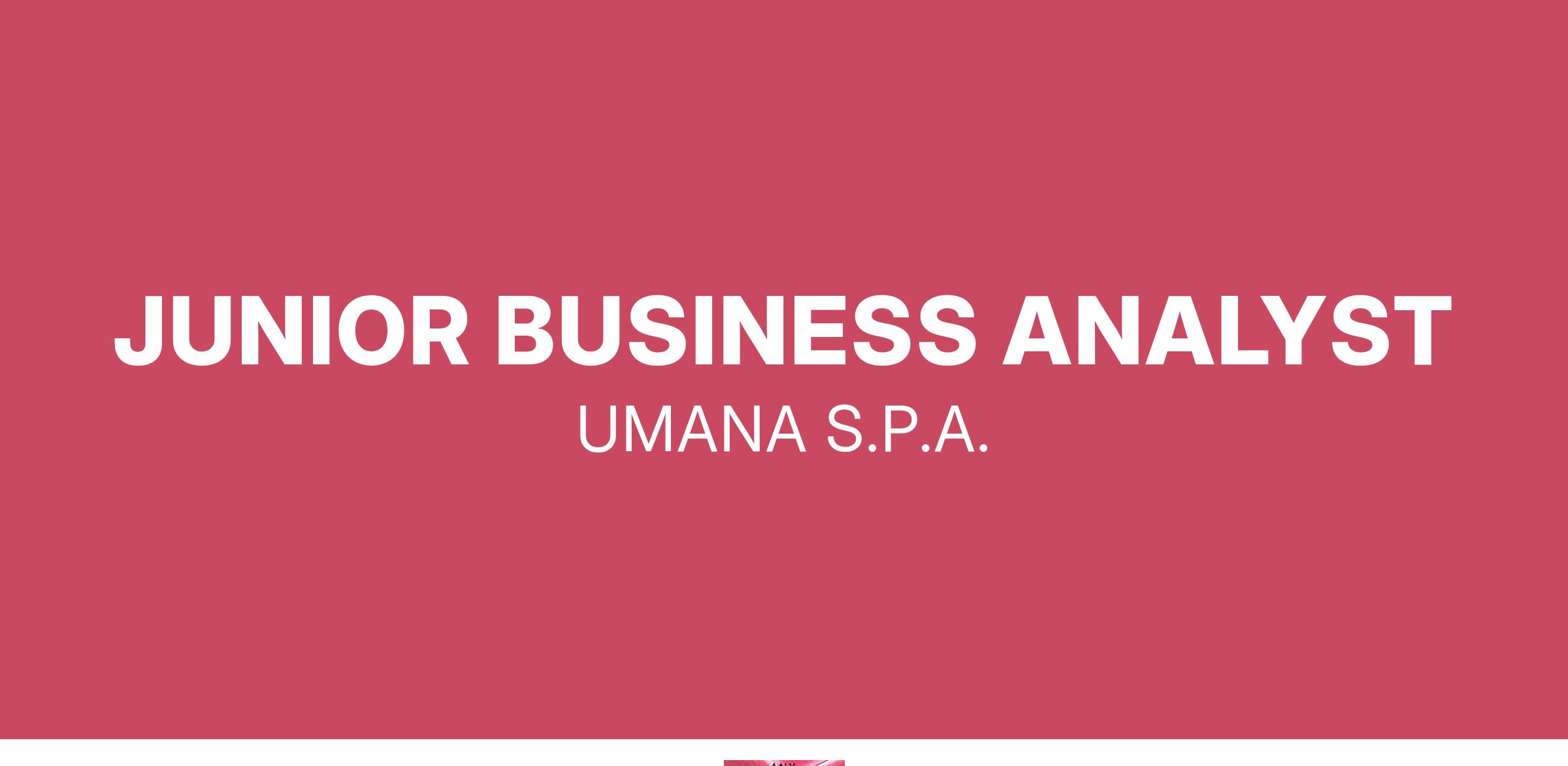 Per solida realtà, operante nell’ambito della consulenza informatica, ricerchiamo: n°1 JUNIOR BUSINESS ANALYST La persona, inserita all’interno dell’area Business Development, supporterà il team occupandosi di analisi dati aziendali, gestione di report periodici e pianificazione economico/finanziaria. Sede di lavoro: Padova (PD) + possibilità di smart-working Orario di lavoro: dalle ore 09.00 alle 18.00 con un’ora di pausa pranzo Contratto: iniziale contratto a tempo determinato di 12 mesi con possibilità di stabilizzazione CCNL applicato: Commercio, III livello, circa 1.906,68 euro lordi mensili su 14 mensilità RAL: 26.000-27.000 + buoni pasto da 8 euro Il presente annuncio è rivolto a candidati di entrambi i sessi, i quali possono consultare l'informativa sul trattamento dei dati personali (art. 13 del Reg. UE 2016/679) su www.umana.it/privacy. Umana S.p.A. è un'Agenzia per il Lavoro - Aut. Min. Lav. Prot. n. 1181 - SG del 13/12/2004.