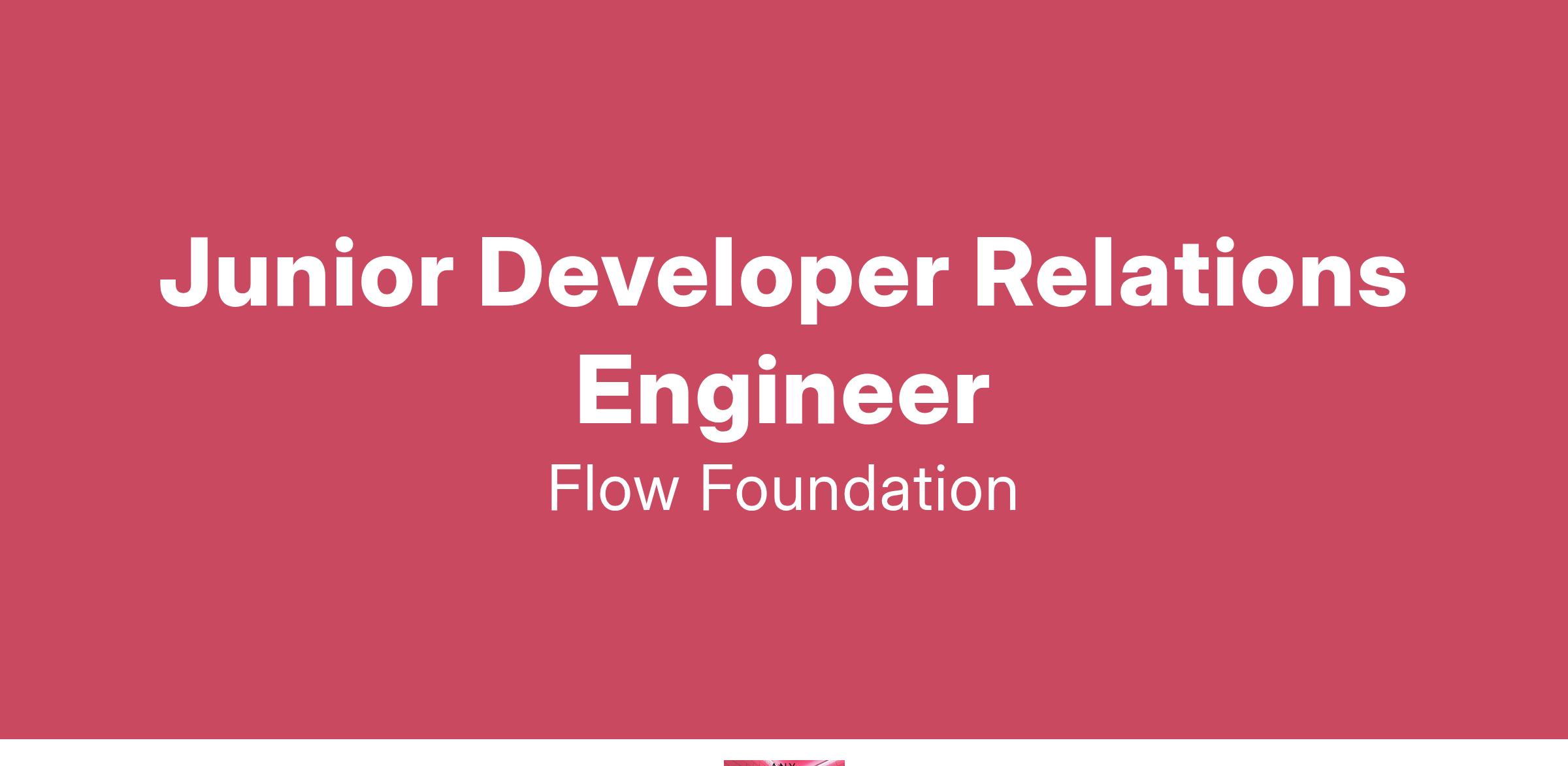 Weâre looking for a Junior Developer Relations Engineer to help onboard and excite developers about building on Flow. Youâll be the first point of technical engagement for many developers entering Web3 and Flowâs ecosystem, helping them take their first steps, guiding them through key use cases, and fostering an active and engaged developer community.