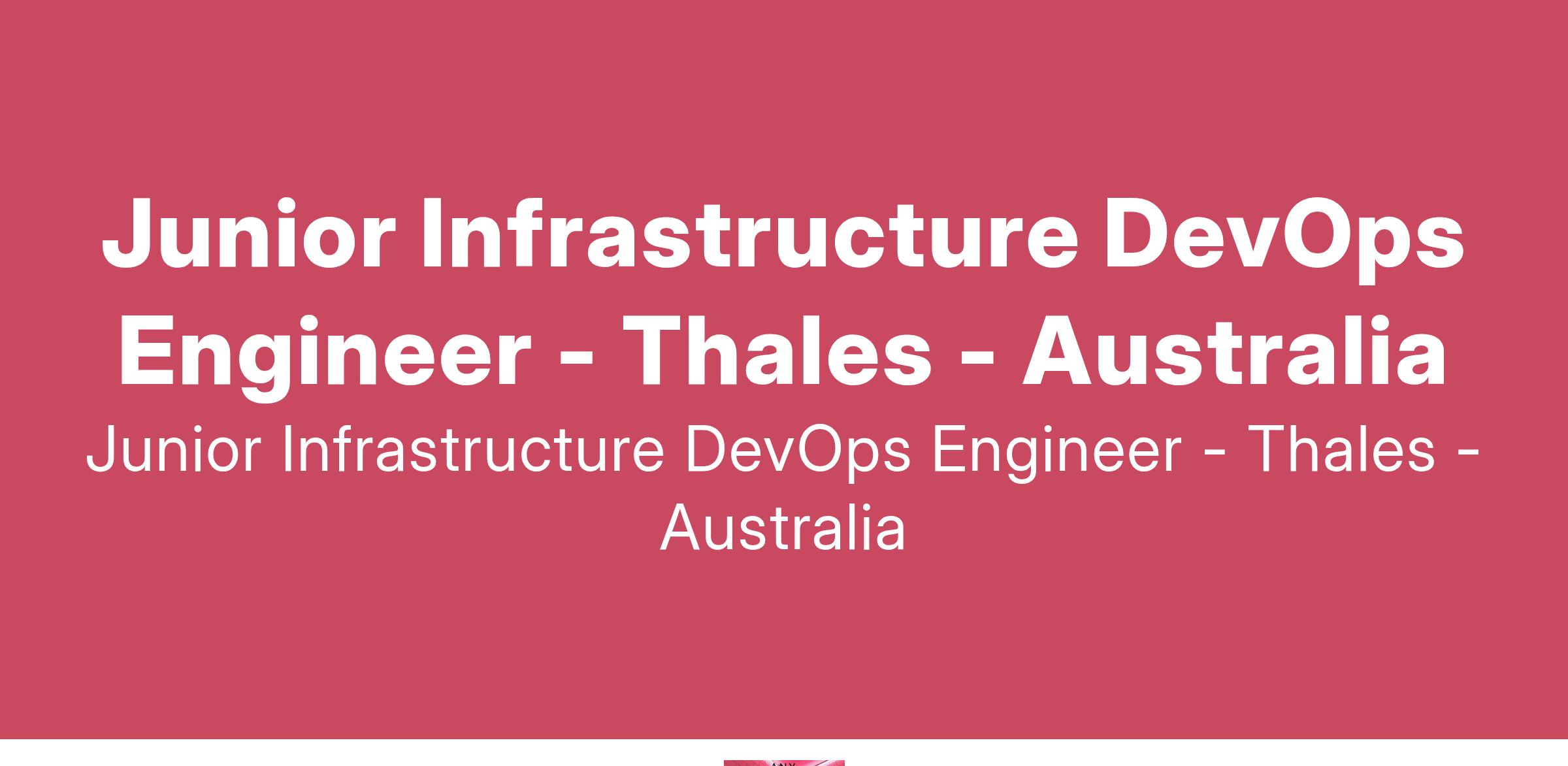 Thales Airspace Mobility Solutions is searching for a Graduate or Junior Infrastructure DevOps Engineer to join the team that is delivering a range of IT Computer and networked infrastructure for a safety critical Air Traffic Control solution.