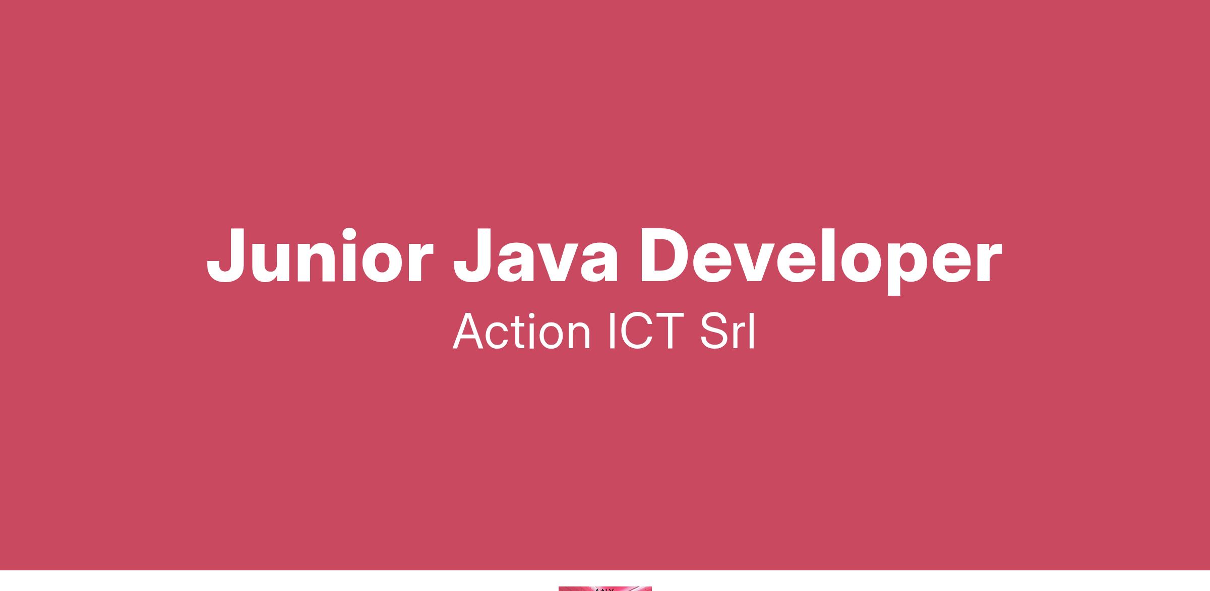 Rif.: 250113-JJ-MI Action ICT , società in forte crescita specializzata nella fornitura di servizi informatici alle aziende, prevede l'inserimento di sviluppatori JAVA Junior. Ricerca quindi candidati con il seguente profilo professionale: Programmatori JAVA JUNIOR Luogo di lavoro: Milano/smart working Inizio: immediato Posizioni aperte: 1 Inquadramento: Tempo Indeterminato Retribuzione indicativa: commisurata al livello di esperienza.
