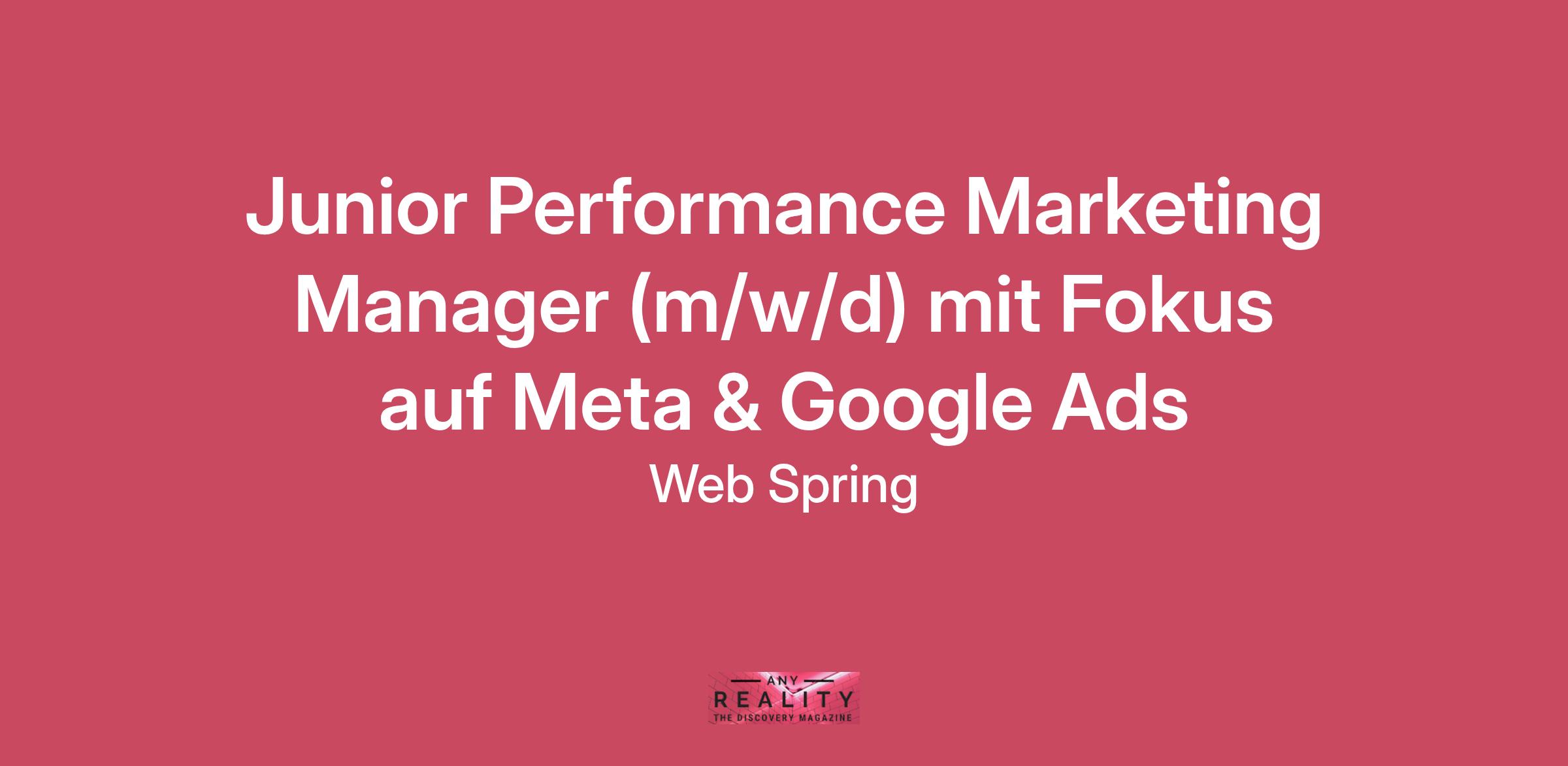 Junior Performance Marketing Manager (m/w/d) mit Fokus auf Meta & Google Ads