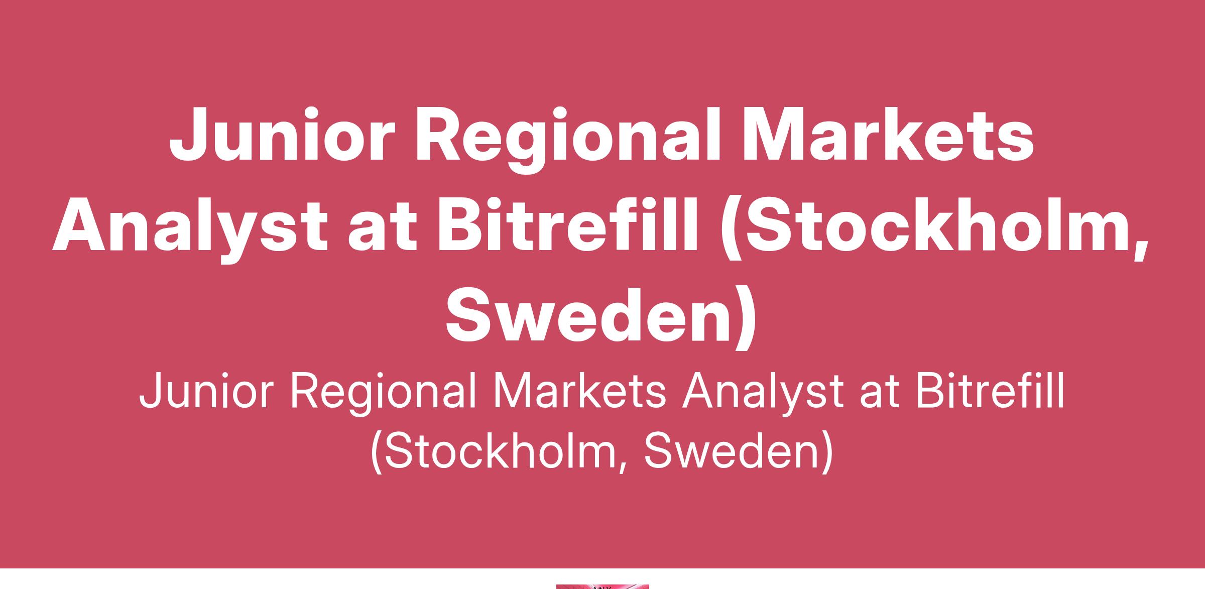 Junior Regional Markets Analyst at Bitrefill (Stockholm, Sweden)